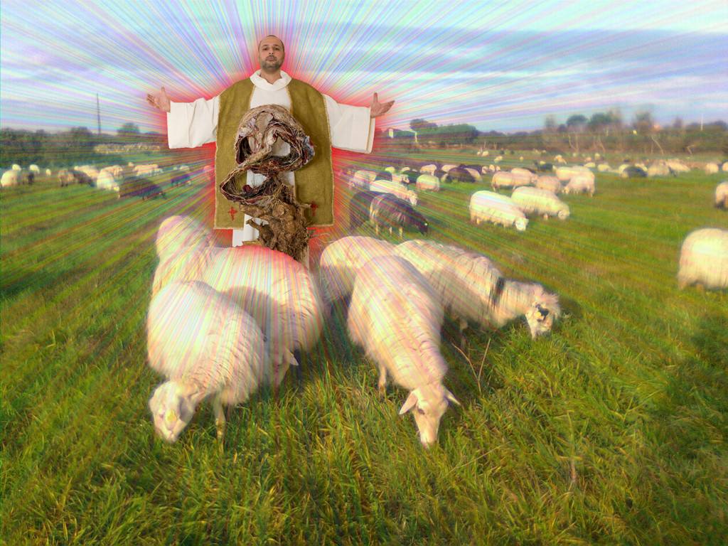 Domenica 5 Maggio dalle ore 9 in concomitanza con Monumenti Aperti presso la Galleria a Cielo Aperto di Mangiabarche l’artista Federico Cozzucoli realizzerà la sua nuova performance dal titolo Martyrium. Nello splendido panorama della costa Calesettana, circondato dalle strutture militari realizzate per i combattimenti della Seconda Guerra Mondiale e oggetto di recupero da parte della Conservatoria ̶ come lo spazio che ospita la Galleria a Cielo Aperto ̶ Cozzucoli, vestiti gli usuali abiti che sacralizzano la sua arte, una stola dorata e un camice bianco, condurrà, come il Buon Pastore di religiose memorie, un gregge di pecore. Nel suo cammino sarà accompagnato dal suonatore di launeddas Michele Deiana.