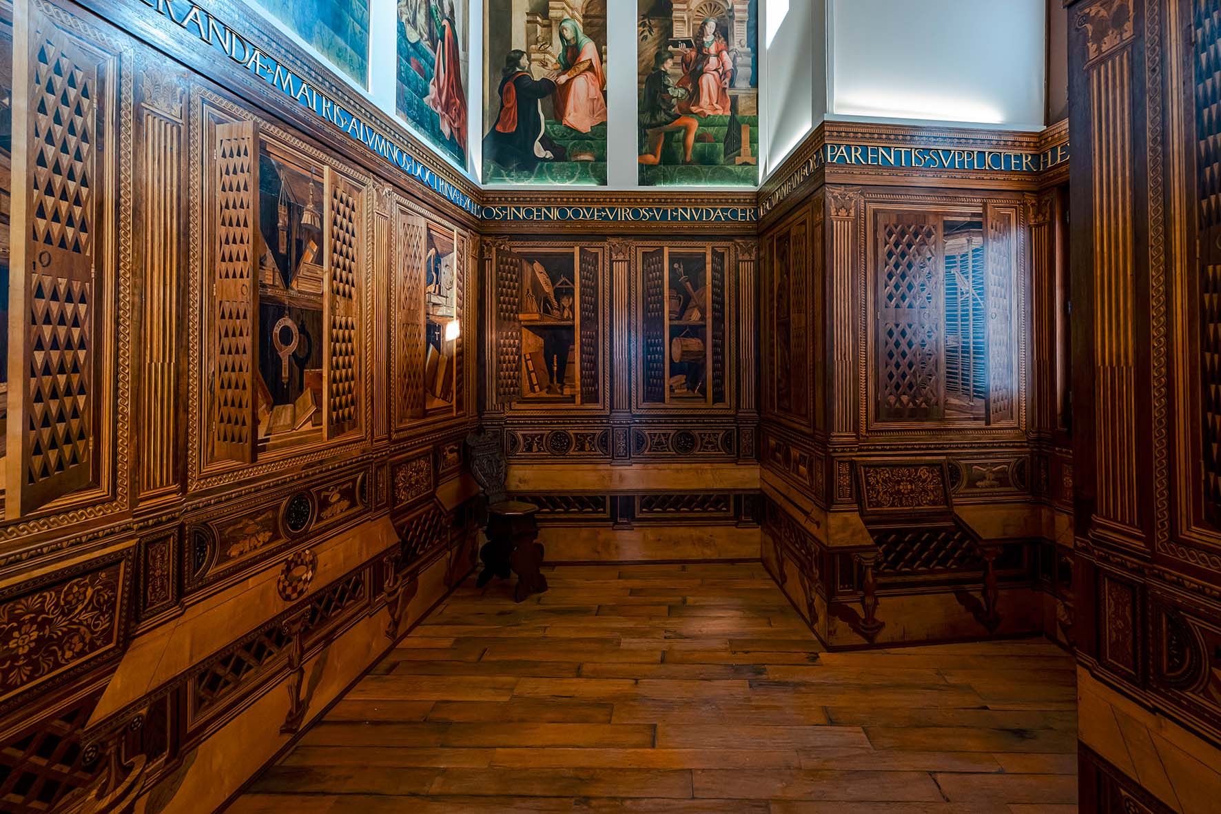 A Palazzo Ducale verrà raccontata la vita di corte del duca, le vicende costruttive del palazzo e le arti a Gubbio nel periodo feltresco. Palazzo dei Consoli ospiterà una sezione dedicata al fare e pensare la guerra all’epoca di Federico da Montefeltro e un’altra alla sua cultura umanistica. Al Museo Diocesano, infine, l’esposizione è dedicata alle scienze matematiche, astronomiche e astrologiche, particolarmente care alla corte e al duca.