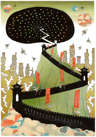 Ne è nato un gioco di invenzione in cui la città immaginata in ciascuna delle dieci tavole è racchiusa in un universo fantastico e paradossale (spaziale, sottomarino, entomologico), creato mischiando tecniche ed elementi visivi distanti tra loro ma sottilmente e liberamente legati ad alcune idee del testo originario.”