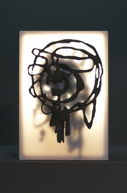 Nella serie di mostre sui colori bianco, rosso e nero organizzate dalla galleria, Federico Paris interpreta il nero ed espone nove piccole sculture a sfondo luminoso. Nove immagini dal fondo del pozzo buio che è la sua testa, dove l’oscurità viene esaltata da una luce fioca che crea e materializza prodromi di ombre ammonitrici e premonitrici, delle quali solo a posteriori e sotto attenta analisi si potrà dire che erano il presagio di eventi futuri