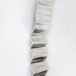 Le sculture dedicate al movimento del ghiaccio spezzato, alla goccia che cade, portano con sè la ‘pelle’ degli elementi della montagna. Il legno nelle sue fibre traccia la mappa della terra, una trama sottile che sembra erodere la superficie dando origine ad un movimento di onde concentriche (Minimi segni), un movimento continuo capace di trasformare la materia da solida a liquida e viceversa (Frozen river).