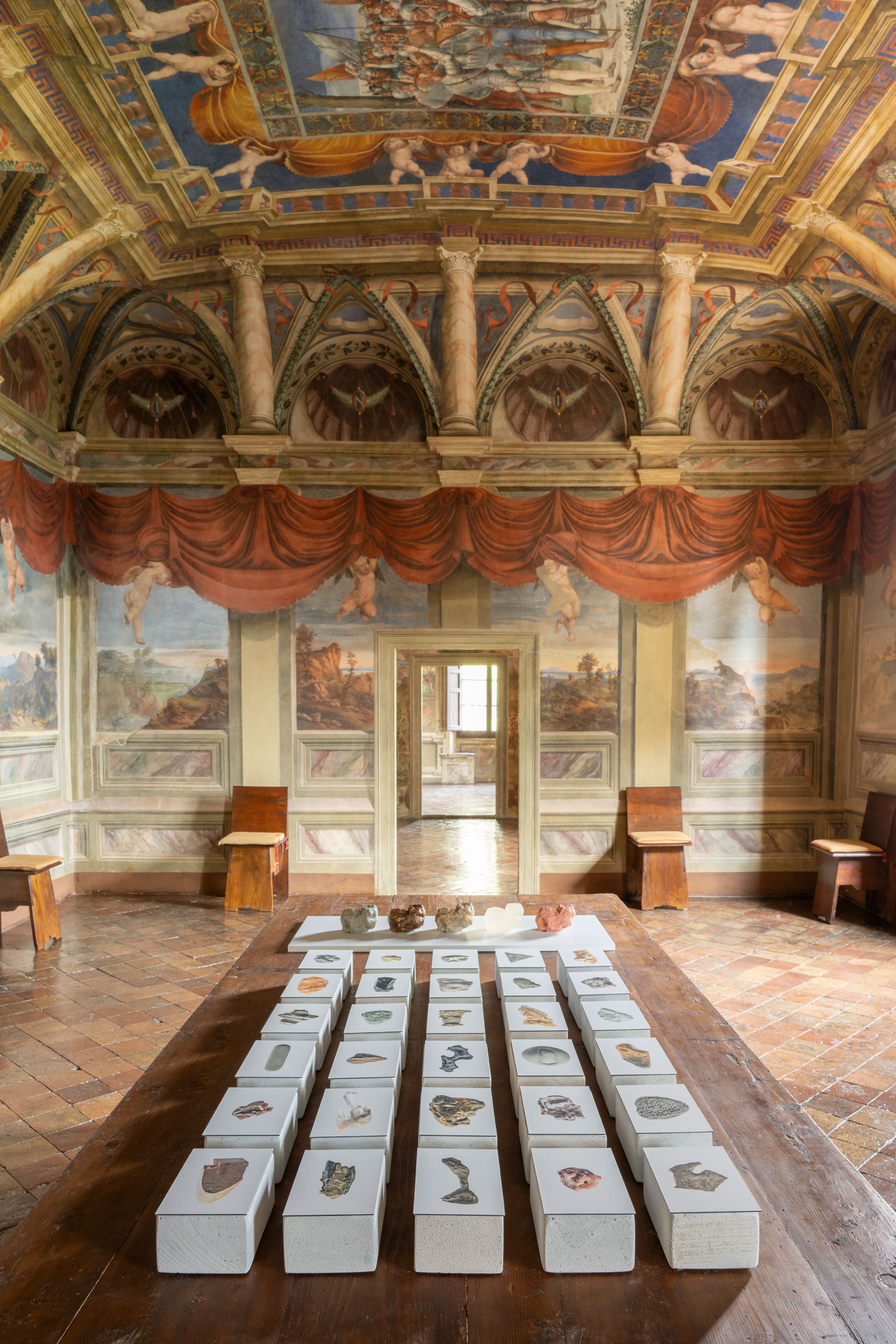 I cairns invitano il visitatore a rallentare e osservare, le fotografie si combinano con i punti di vista proposti all’osservatore dagli spazi della villa, attentamente individuati per stimolare nuovi interrogativi e instaurare un confronto dialogico tra realtà e rappresentazione.