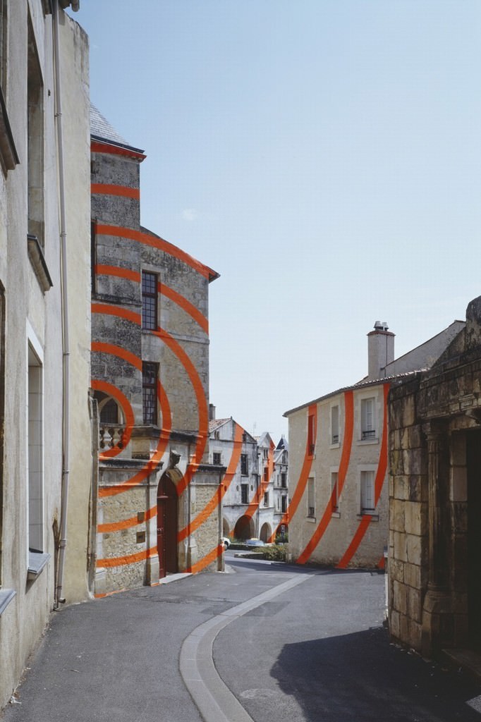 Il lavoro di Varini è volto ad indagare molteplici possibilità percettive dello spazio nell’intento di restituire allo spettatore nuove dimensioni pittoriche non solo da guardare ma anche da attraversare. Muovendosi nello spazio l’osservatore può sperimentare infiniti punti di lettura ed essere sorpreso dall’apparire di geometrie effimere e allo stesso tempo reali.