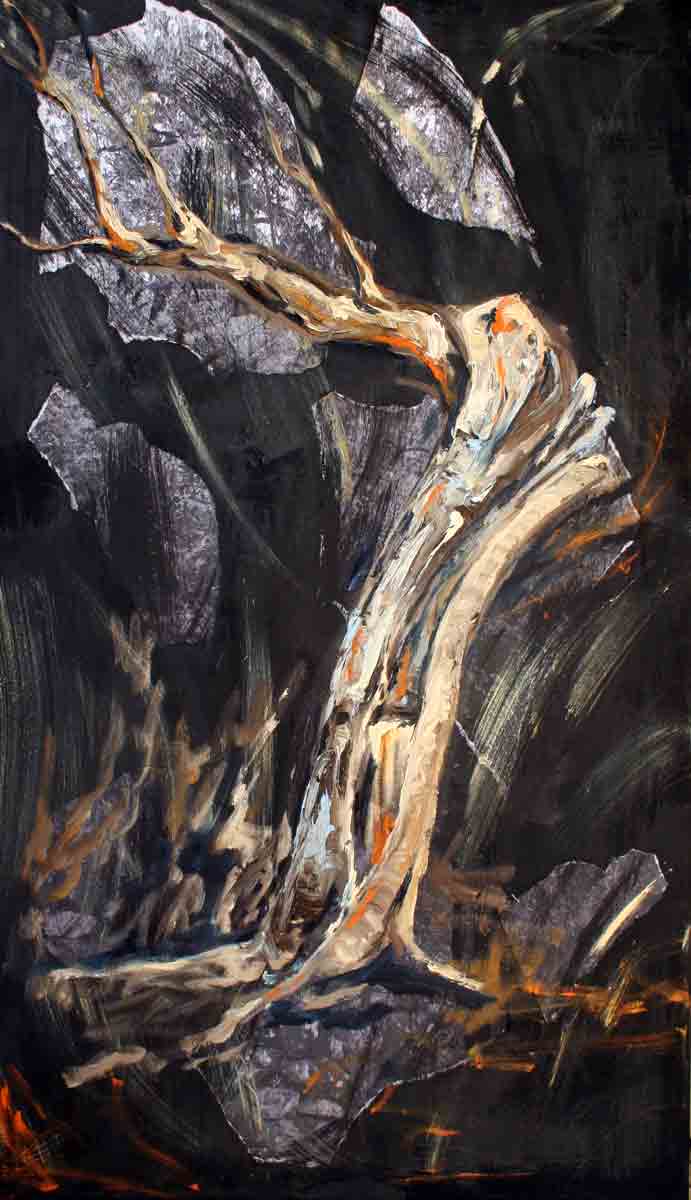 Il riferimento alle fiabe diviene espediente di paragone poiché fiabe ed arte sono entrambe frutto della fantasia, nutrono gli animi di ognuno da sempre con la grande abilità di consentire espressione libera, senza convenzioni e costrizioni. Astrazione e figurazione a confronto in due sale: Marta Boccone, Aldo Pietro Ferrari, Ilaria Giolli, Michelle Hold con differenza e grinta, ognuno a modo proprio, dicono della loro passione con libertà di mezzi e azioni in una location che diviene mondo incantato in cui scoprire i latenti sensi di ogni gesto. Marta Boccone è materia corposa e sostanziosa che delinea paesaggi e spiagge: un’arte da toccare con mano in cui la materia (sassi, conchiglie, vetrini colorati) crea scorci sempre diversi dove il colore definisce gli spazi in una sostanzialità che non è espressamente figurazione ma neanche astrazione concettuale; Aldo Pietro Ferrari fuori dagli strumenti accademici si avvale del segno rapido per dipingere con grafite moto, paesaggi, donne: un’arte su carta inquadrata da toni fervidi di acquerello o pennarello che sono il segno della vitalità, dell’energia che liberamente si trascinano il tutta l’opera finanche fuori lo schema inquadrato e deputato alla resa finale; Ilaria Giolli è una mano rapida che dipinge su iuta avvalendosi di una diversità tecnica in continua crescita poiché l’arte è un’esigenza volta alla ricerca del movimento: non contano i soggetti ma la gestualità prende il sopravvento divenendo l’attrice protagonista che tratteggia corpi e alberi, espressione di una passione interna che si rinnova in un impulso grandioso; Michelle Hold si avvale di larghe losanghe frutto di una gestualità scattante e geniale dove i toni e i grandi supporti introducono l’osservatore in un iter accattivante ed avvincente, avvolgente ed intrigante poiché esplosione tonale ed energia grintosa emergono con un binomio imparagonabile per parlare di natura e scienza.