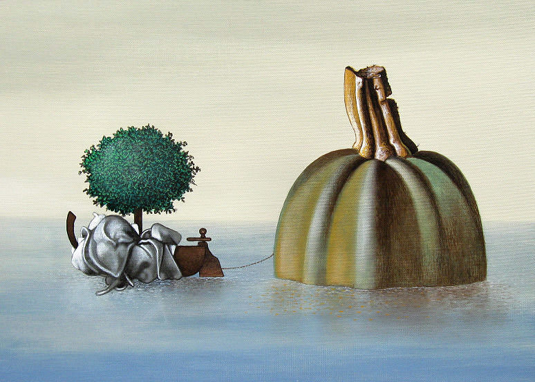 E' del 1993-94 il ciclo di dipinti “La zucca di Michelangelo” in mostra a partire dal 3 maggio 2015. Ha lo stesso titolo di una delle opere e tratta dei viaggi di alcune barche-isole.