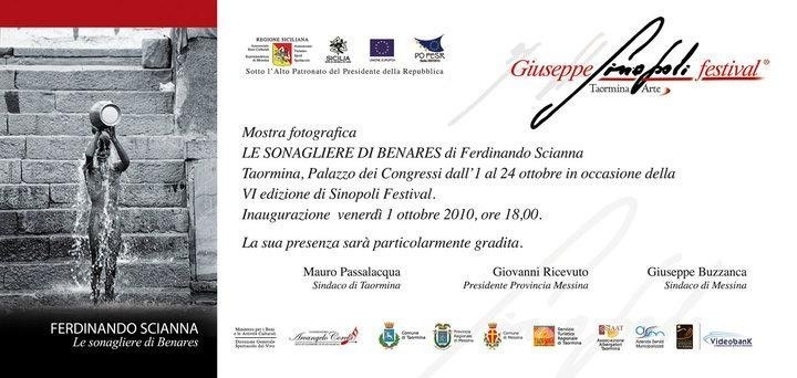 Sarà Ferdinando Scianna, uno dei più grandi fotografi del nostro tempo, ad inaugurare il “Sinopoli Festival 2010”, venerdì 1 ottobre, alle 19.15, al Palazzo dei Congressi di Taormina con la sua mostra: “Le sonaglierie di Benares”. Si tratta di una singolare raccolta di fotografie del famoso artista siciliano, noto in tutto il mondo, proposta da “Taormina Arte”. Sarà possibile ammirare, appunto, una trentina di fotografie in bianco e nero sull'India, paese da sempre amato da Scianna. Le immagini vanno dal 1972 al 1997 e sono accompagnate da un testo inedito dell’artista, “Viaggio a Benares”. Un testo, questo, scritto anni addietro e che testimonia come l’autore sia realmente attratto da questo mondo per certi versi anche familiare. “Benares affascina tutti – scrive, infatti, Scianna- è uno dei grandi luoghi della spiritualità universale, vi si incontrano fisicamente il fiume sacro e le pire delle cremazioni rituali, la morte e il brulicare della vita, è un luogo emblematico, per noi, del lontano e dell’esotico. Ma a me i luoghi cosiddetti esotici non hanno mai fatto effetto di meraviglia della diversità di spaesamento e nemmeno di pasoliniana nostalgia per un mondo perduto, di innocente armonia. Al contrario, è un sentimento di familiarità con quel modo di essere e con le immagini nelle quali esso si rappresenta che mi sorprende ogni volta, come se vi ritrovassi la normalità le cui radici sono forse nella mia infanzia siciliana, nella consonanza che riconosco con il mondo prima giovinezza”.