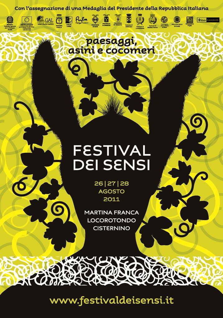 Sarà il paesaggio il protagonista della terza edizione del Festival dei Sensi 2011, che si terrà quest’anno dal 26 al 28 agosto a Cisternino, Locorotondo e Martina Franca. La manifestazione, organizzata dall’associazione Iter Itria in collaborazione con l’Università di Bari e con il sostegno del GAL Valle d’Itria, torna ad ammaliare il suo raffinato pubblico nell’ultimo scorcio d’estate, proponendo un format apprezzato da quasi 10.000 affezionati: conferenze sul tema dei cinque sensi nelle più belle masserie e dimore storiche della valle dei trulli, visite guidate nei borghi antichi, passeggiate naturalistiche alla scoperta del territorio, mostre e proiezioni cinematografiche.