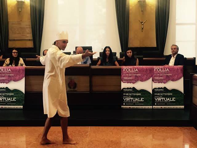 Durante la conferenza stampa è intervenuto anche l'attore e artista teramano Piergiuseppe Di Tanno con una performance a sorpresa dell’"Enrico IV" di Pirandello (l’artista sarà tra gli ospiti del Festival)