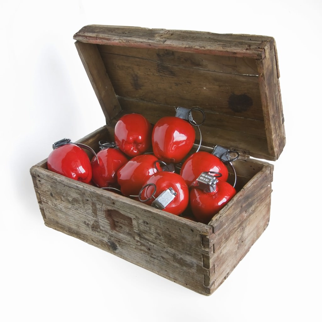 Fidia invece, su vecchi banchi di scuola, bancali da lavoro e altre superfici in legno sagomate e dipinte, mostra quelle che sono le molteplici icone dell’immaginario favolistico e dei personaggi “animati” ed “educatori” della nostra generazione. Archetipi ormai trasfigurati e da lui ritrovati privi di potere onirico.