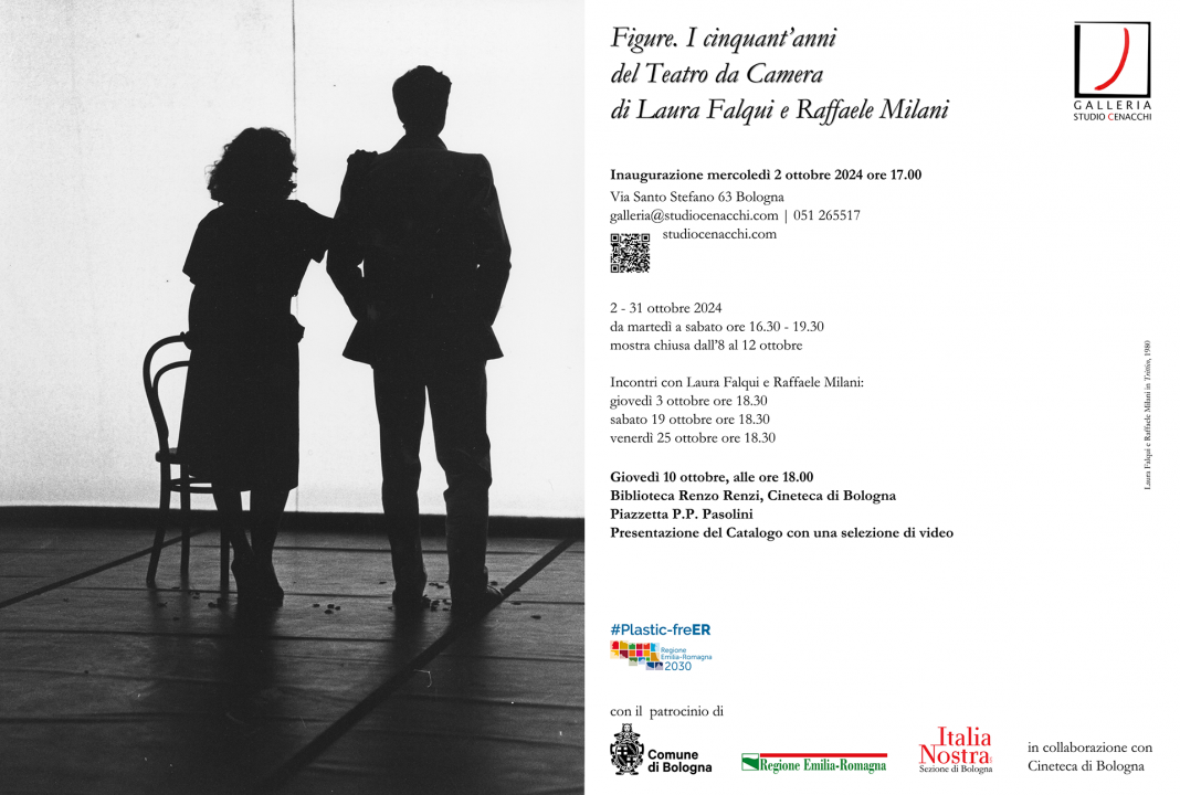 Mercoledì 2 ottobre, alle ore 17, nella Galleria Studio Cenacchi di via Santo Stefano 63, si inaugura Figure. I cinquant'anni del Teatro da Camera di Laura Falqui e Raffaele Milani, una mostra allestita con la preziosa collaborazione della Cineteca di Bologna e dell'Immagine ritrovata; con il patrocinio del Comune di Bologna, della Regione Emilia Romagna, di Italia Nostra-Bologna.