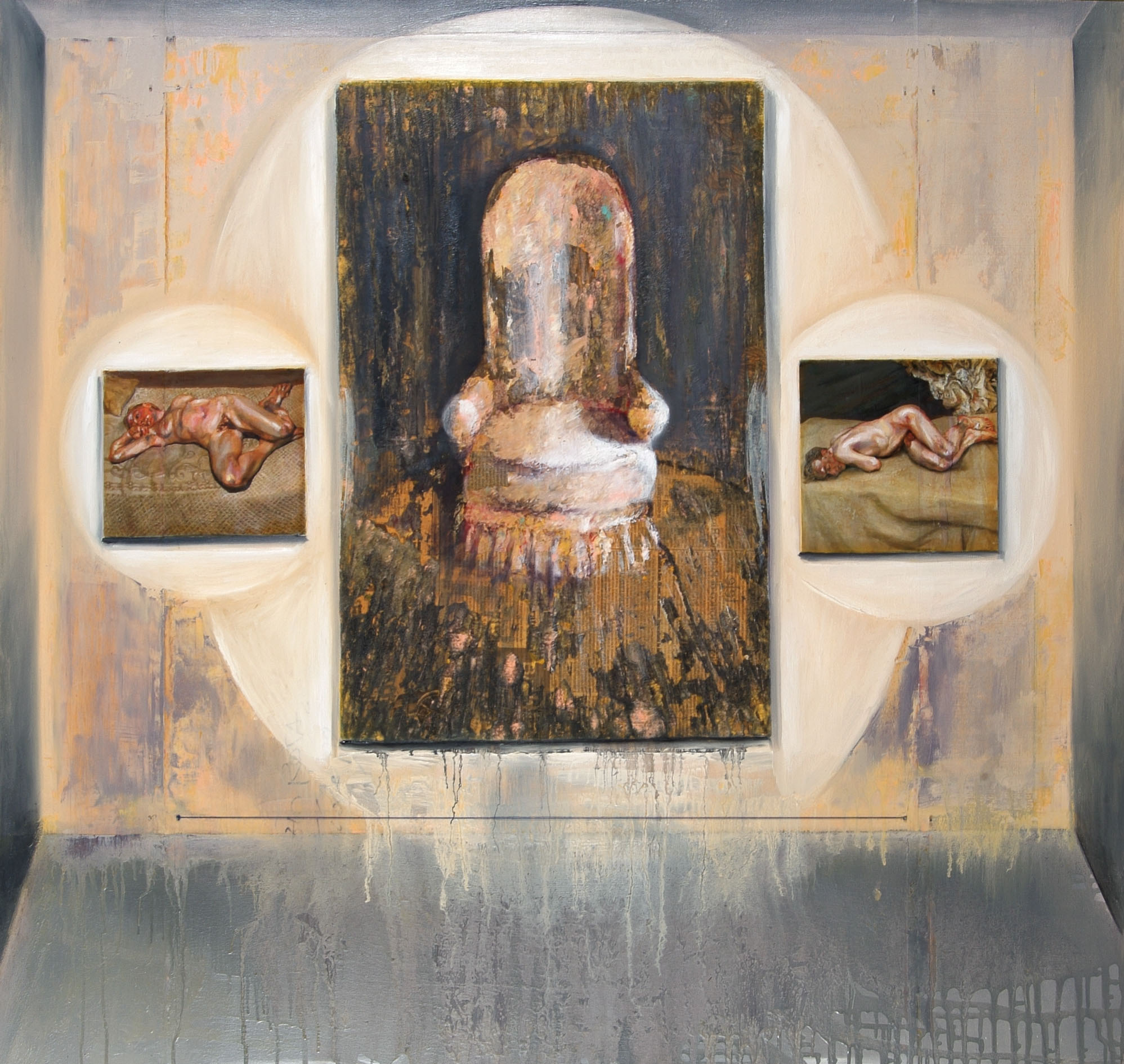 81 opere tracciano un percorso incentrato sulla produzione pittorica di Calusca. Una selezione di dipinti e disegni, dal 1998 a oggi, accostati a quelli appartenenti alla Collezione Camemi creano un suggestivo itinerario attraverso i vigorosi e suggestionanti rimandi iconografici dei loro soggetti.