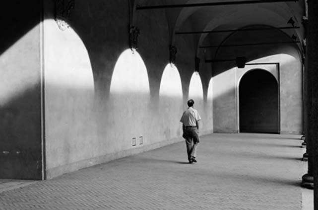 Da questo comune denominatore è nato questo progetto che fissa un istante che almeno una volta tutti abbiamo incontrato interpretato da due personalità artistiche opposte e attraverso due mezzi espressivi differenti, cogliendo l’uno il particolare poetico, l’altra l’universalità dell’’uomo senza volto’, che nell’essere ‘nessuno’ in particolare, diventa chiunque di noi; specchio del nostro tempo le fotografie di Filippo Bosio, specchio dell’osservatore le grandi tele di Daniela Caciagli. La scelta del bianco e nero del Bosio, che ci porta a diventare posteri di noi stessi e a riguardare il mondo che viviamo attraverso il filtro della memoria futura, proietta nel futuro il nostro sguardo all’attimo trascorso. Mentre il ‘non detto’ della Caciagli, ciò che non c’è, che non è espresso, ci costringe a colmare con noi stessi e il nostro sentire i vuoti, i silenzi, l’indefinito, il nascosto.