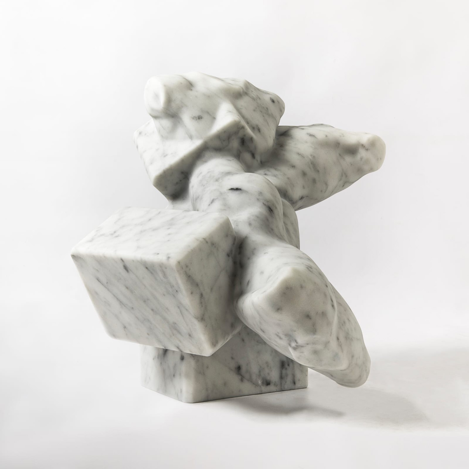 In mostra anche una scultura marmorea: opera tridimensionale dove il soggetto si moltiplica e si rifonda incessantemente fino a creare un agglomerato che idealmente tende a trascendere le leggi gravitazionali e le coordinate spaziali. La sensazione che si avverte è quella del relazionarsi con l’esterno, il necessario sentito bisogno di ricomporre dei vetri infranti e ristabilire un ordine. Non esistono più riferimenti per lo spettatore e questo comporta la possibilità di osservare un’oggettività differente con un sapore scultoreo romantico che elogia la manualità del fare artistico dell’autore.