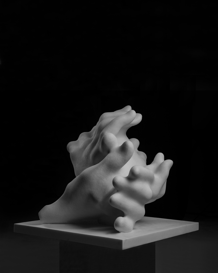 La tipologia del progetto di Ciavoli è improntata sul binomio statico-dinamico, sulla modernità in contrapposizione alla contemporaneità, sul fattore di pesantezza in continua lotta con la leggerezza; una variegata scena scultorea che si impone sulle diverse realtà del materiale in oggetto: annientare la materia trattata e darle un aspetto di morbidezza, creare forme voluttuose che nella loro ripetizione creano un’immagine, lasciare la natura come autrice di quello che poi l’uomo andrà a modificare. Questi sono gli aspetti principali dell’opera che insiste sulla ripetizione dell’immagine di una mano che, nelle forme ottenute e nella loro struttura, ricorda il corallo e la stessa formazione calcarea del marmo.
