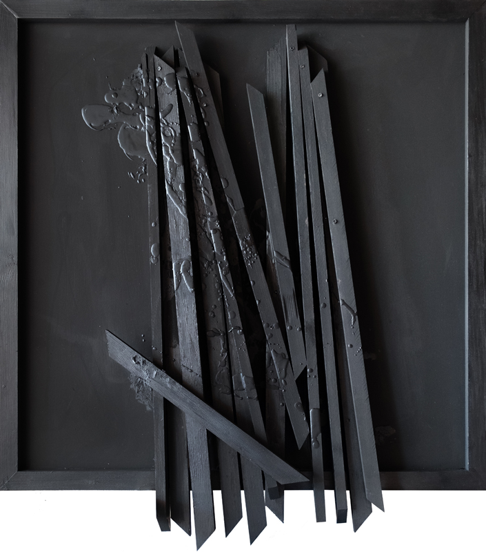 Le opere selezionate per la prima personale del giovane artista fiorentino mostrano, in un percorso ascendente, una ricerca non finalizzata a sé stessa ma al significato della pittura in quanto tale. L’utilizzo del pigmento nero, nelle sue declinazioni più grezze o raffinate, interagisce con la foglia oro facendo emergere, sin dalle prime opere, l’interesse per un’indagine mitologica e filosofica, pervase da un sentimento alchemico. Nelle opere più recenti lo studio ancora più profondo della materia ha elevato essa stessa a protagonista oltre che mezzo narrativo, dove le colate di cera imprigionano idee e percezioni concettuali.