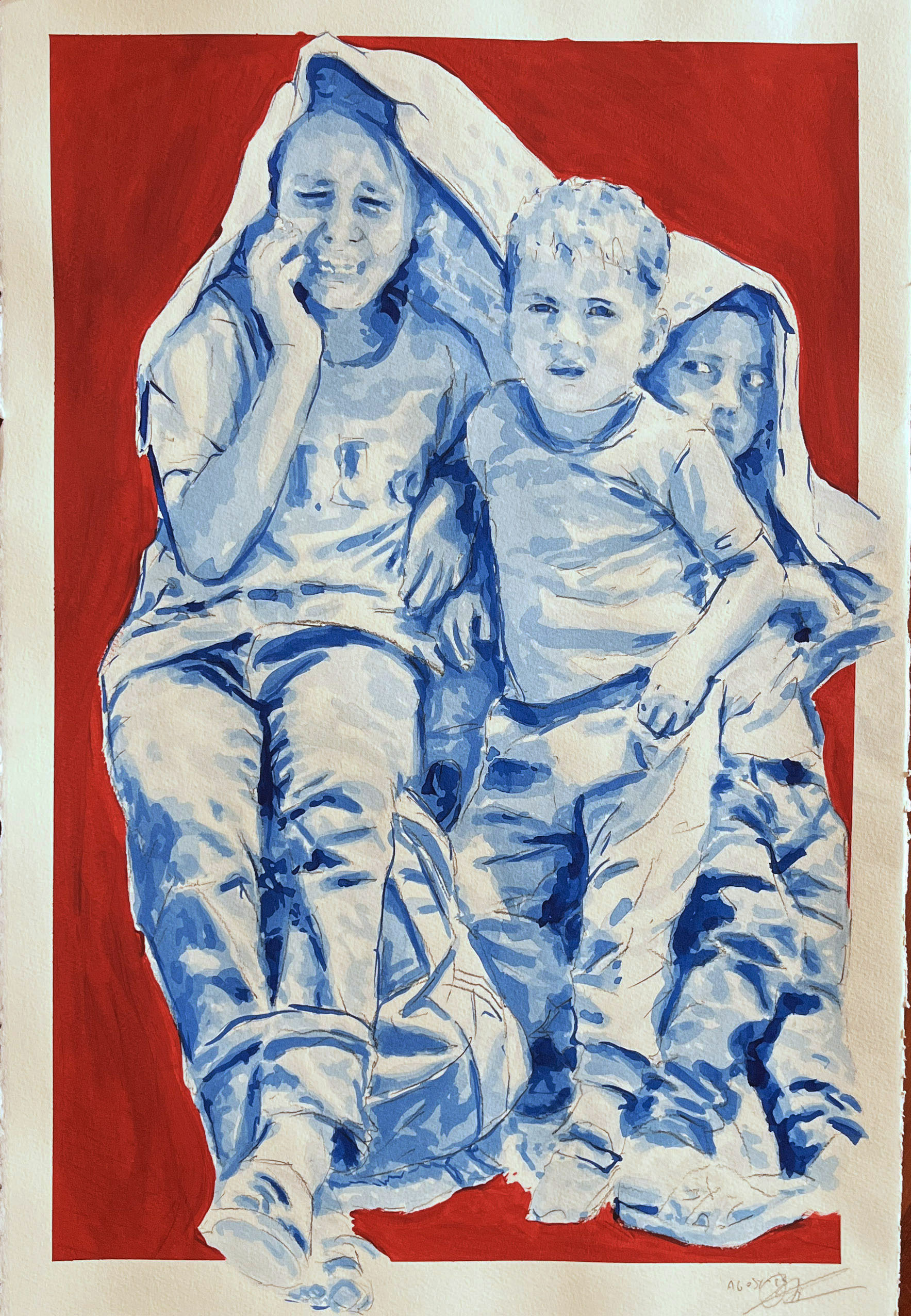 “La mostra evoca un amore viscerale e intimo: quello che una madre prova per il proprio figlio. Riniolo apre un viaggio emozionale attraverso una serie di acquerelli ispirati a madri e figli migranti provenienti da paesi in conflitto. Nei loro sguardi e nei loro gesti, colmi di dolore e tenerezza, l’artista ritrova la radice stessa della storia: un amore smisurato che sopravvive a ogni confine e a ogni perdita. Da queste figure affiora una nuova geografia, tracciata da gesti e memorie, dove madri e figli diventano i nomi di una nuova città che custodisce la memoria universale.” Oyku Atan
