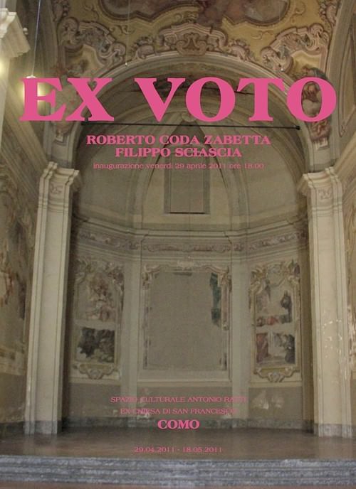 Dopo la mostra alla National Gallery di Jakarta presentata nel 2008, Roberto Coda Zabetta e Filippo Sciascia si ritrovano insieme allo Spazio Culturale Antonio Ratti nell’ex chiesa di San Francesco a Como con Ex voto. L’esposizione, con un testo in catalogo di Lorenzo Poggiali, è organizzata in collaborazione con l’Assessorato alla Cultura del Comune di Como.