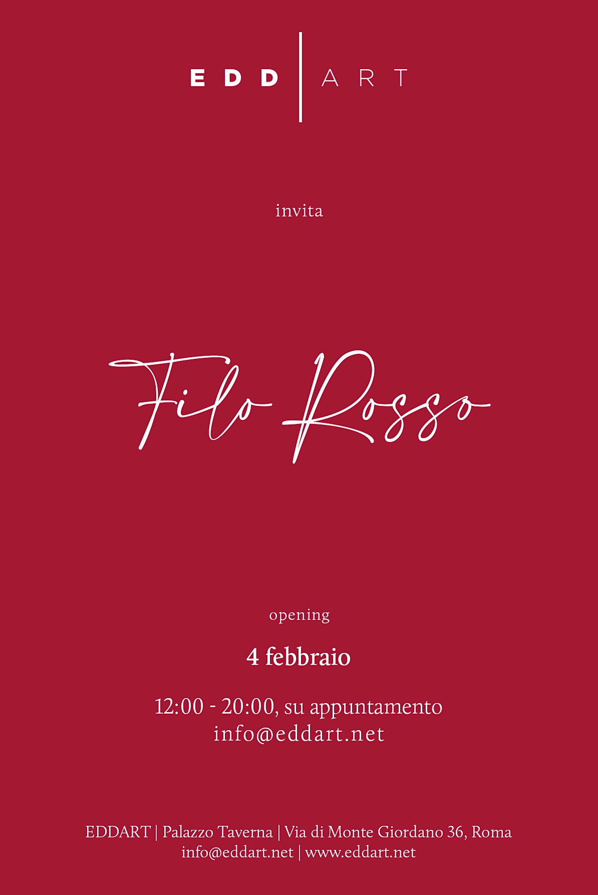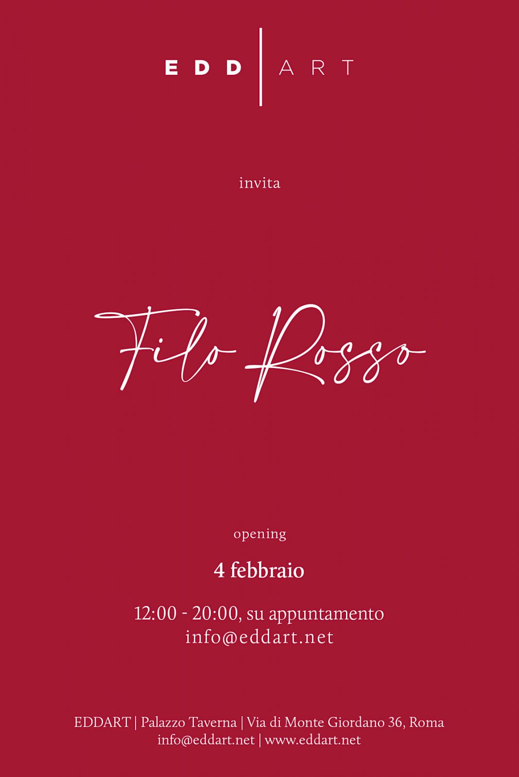 Apertura al pubblico: dal 5 febbraio al 6 aprile 2021- Martedì-Sabato 11-18, solo su prenotazione Info e prenotazioni: info@eddart.net | +39 0648903612