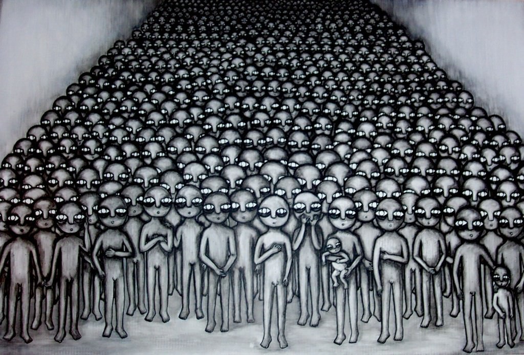 Giovani con differenti background ed eterogenei modi di vedere la realtà, con l’obiettivo d’indagare il lato oscuro dell’umanità, hanno in comune una componente surreale che convive con un realismo più o meno marcato, a seconda della personalità. Capaci di reinventare una cultura visiva che mette in relazione il linguaggio pittorico con altre forme considerate arti minori come illustrazione, fumetto e cartoon. Che ascoltano Nick Cave ed il rock anni ‘70, leggono fumetti ma divorano anche Calvino, Baudelaire e Kafka, e traggono ispirazione dai maestri del cinema da Lynch a Inarittu. Che indisturbati osservano il mondo e rielaborano la realtà attraverso il loro esclusivo punto di vista, poiché "un’opera d’arte è superiore soltanto se è, nello stesso tempo, un simbolo e l’espressione esatta di una realtà" per parafrasare Guy De Maupassant. Realtà filtrata da subculture come Street art e fumetto che trova corrispondenza nella Lowbrow californiana dalla quale sembrano provenire gli stimoli estetici di Luigi Bove che, in maniera ironica e a tratti irriverente, esplora la società contemporanea servendosi dell’intervento digitale per simulare un videogioco interattivo. Ma anche miscelata a cultura manga e Pop art occidentale, come nel movimento Superflat di Murakami, territorio fertile per Veronica Gambula che si cimenta tra disegno, incisione, scultura e installazione per scandire le fasi drammatiche dell’individuo dalla nascita alla morte. Al Pop surrealismo, con tratti fortemente espressionisti, si rifà invece l’estetica di Riccardo Manca che attraverso sintetici e veloci tratti indaga il lato oscuro dell’esistenza distinguendosi dalla New folk di Nicola Testoni, interprete di una sensibilità apparentemente più pacata, ma non per questo meno incisiva, per analizzare il tempo perduto e le inquietudini infantili prendendo le mosse dalla fiaba di Pinocchio. (Roberta Vanali, testo introduzione catalogo)