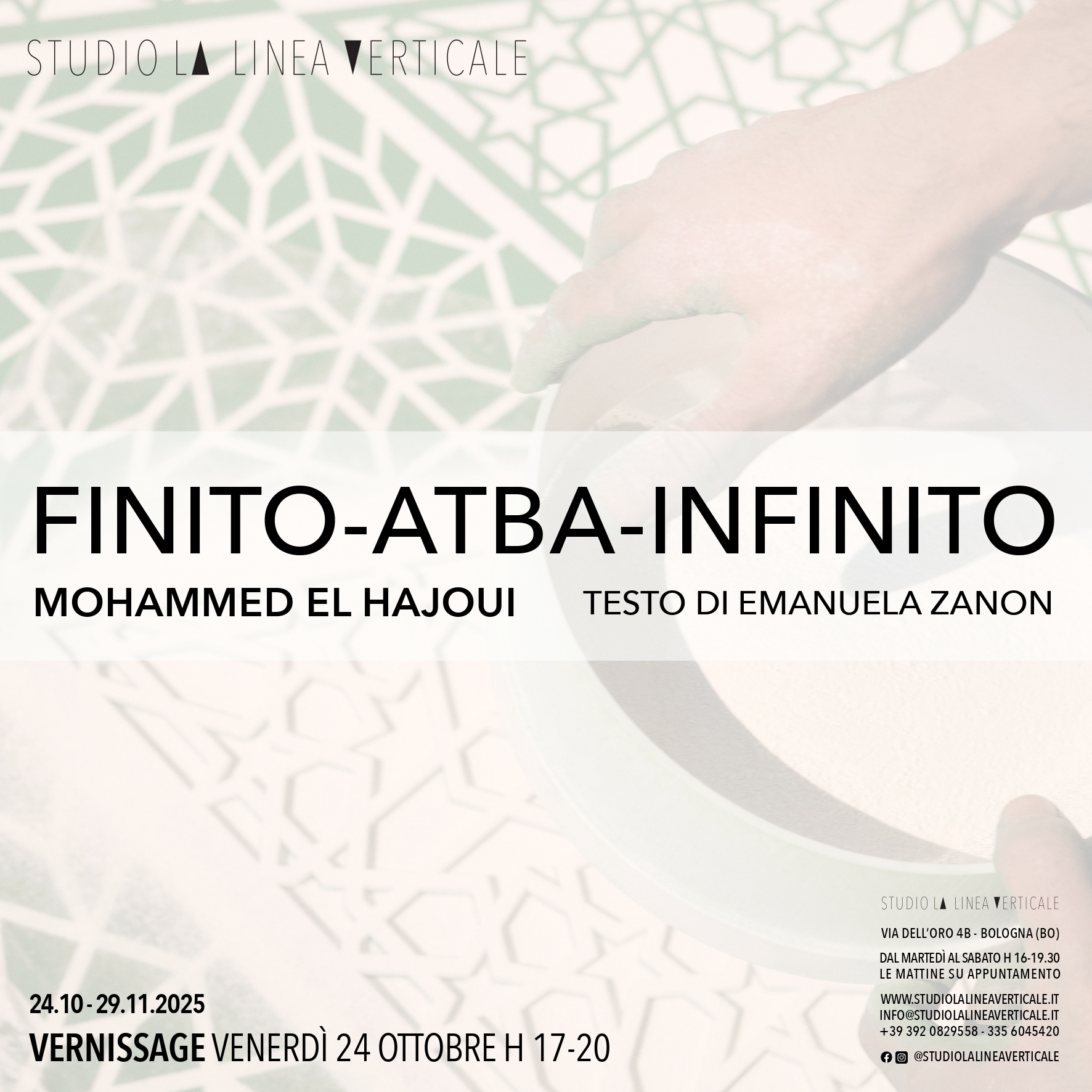 Venerdì 24 ottobre, dalle 17 alle 20, Studio la Linea Verticale inaugura Finito-Atba-Infinito, mostra personale di Mohammed El Hajoui, presentata dal testo critico di Emanuela Zanon.