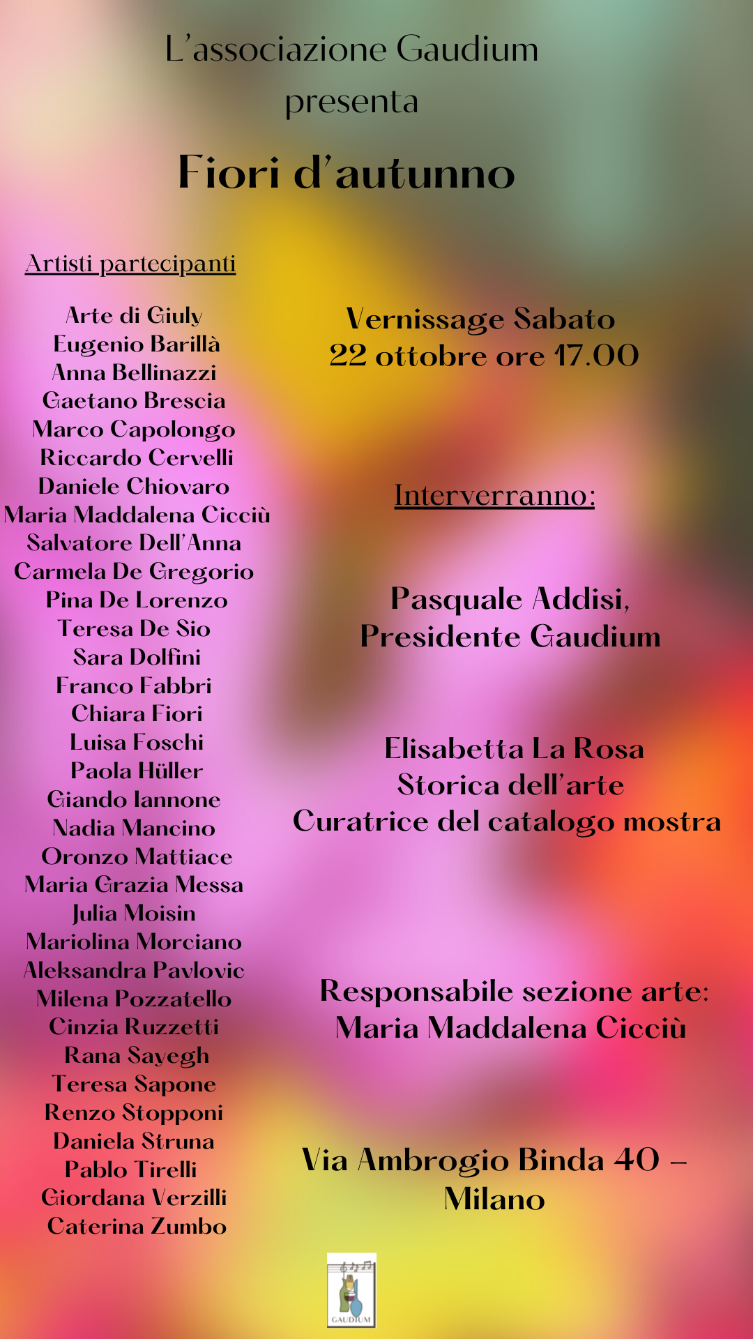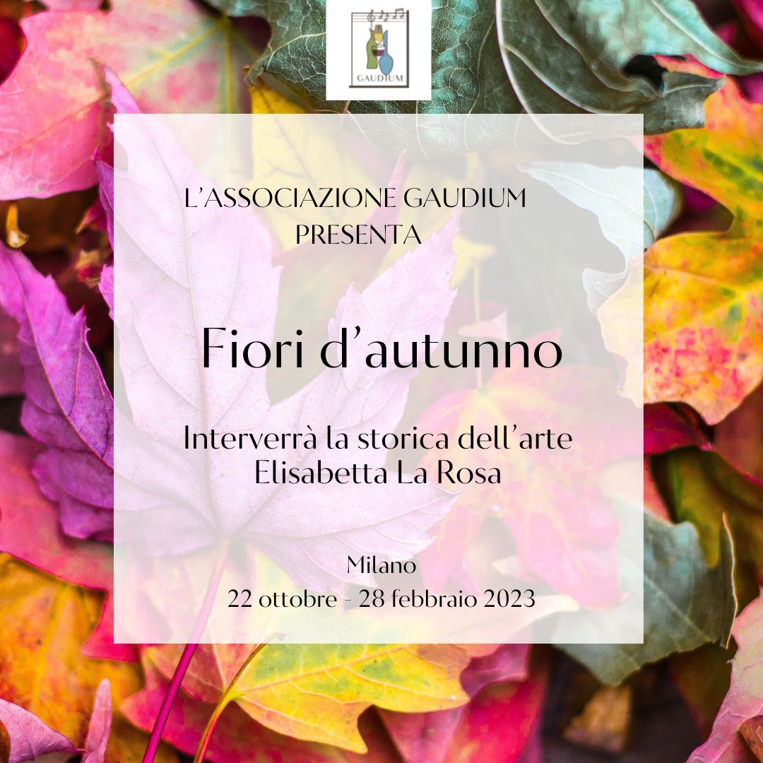 Dal 22 ottobre al 28 febbraio 2023 l’Associazione culturale Gaudium di Milano ospiterà la mostra Fiori d’autunno, un modo per inaugurare la stagione autunnale che assume, però, una duplice valenza: L’autunno come stagione ma anche un autunno interiore.