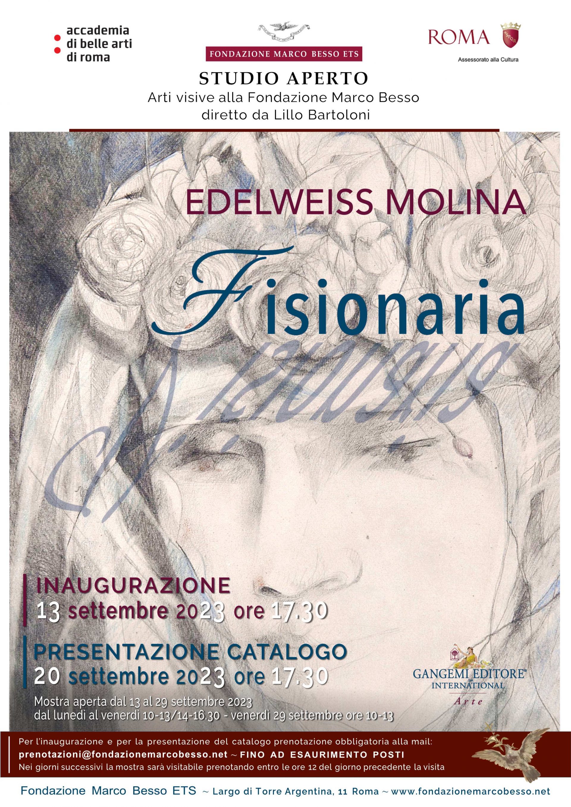 Mercoledì 13 settembre, alle ore 17.30 a Palazzo Besso, in largo di Torre Argentina 11 a Roma, Edelweiss Molina presenta la mostra FISIONARIA Visionaria, pagine di un lungo diario figurativo (oltre dieci anni) nel quale affronta il dilemma dell’Essere e della sua immagine, intesa attraverso la fisionomia e le sue declinazioni.