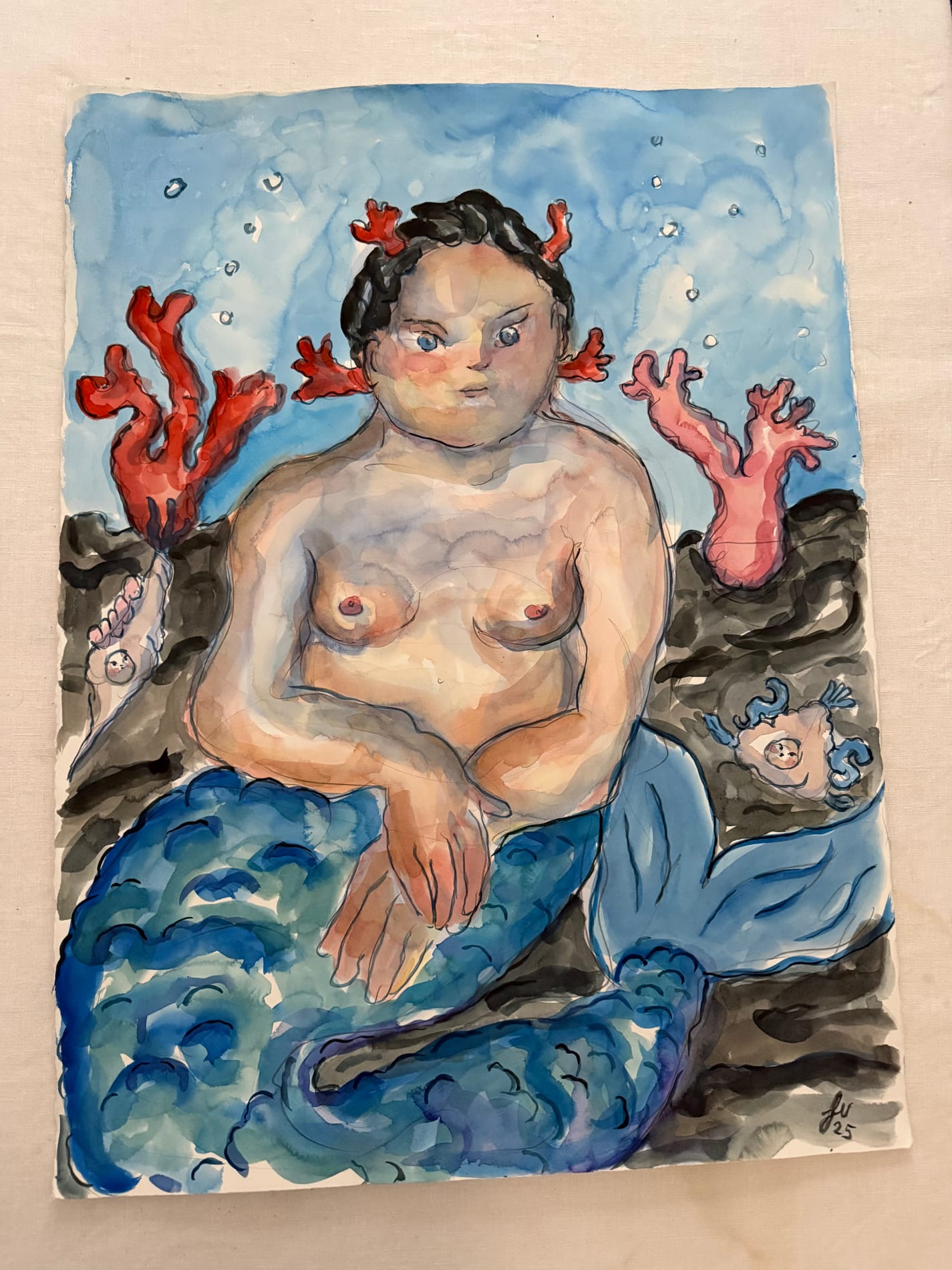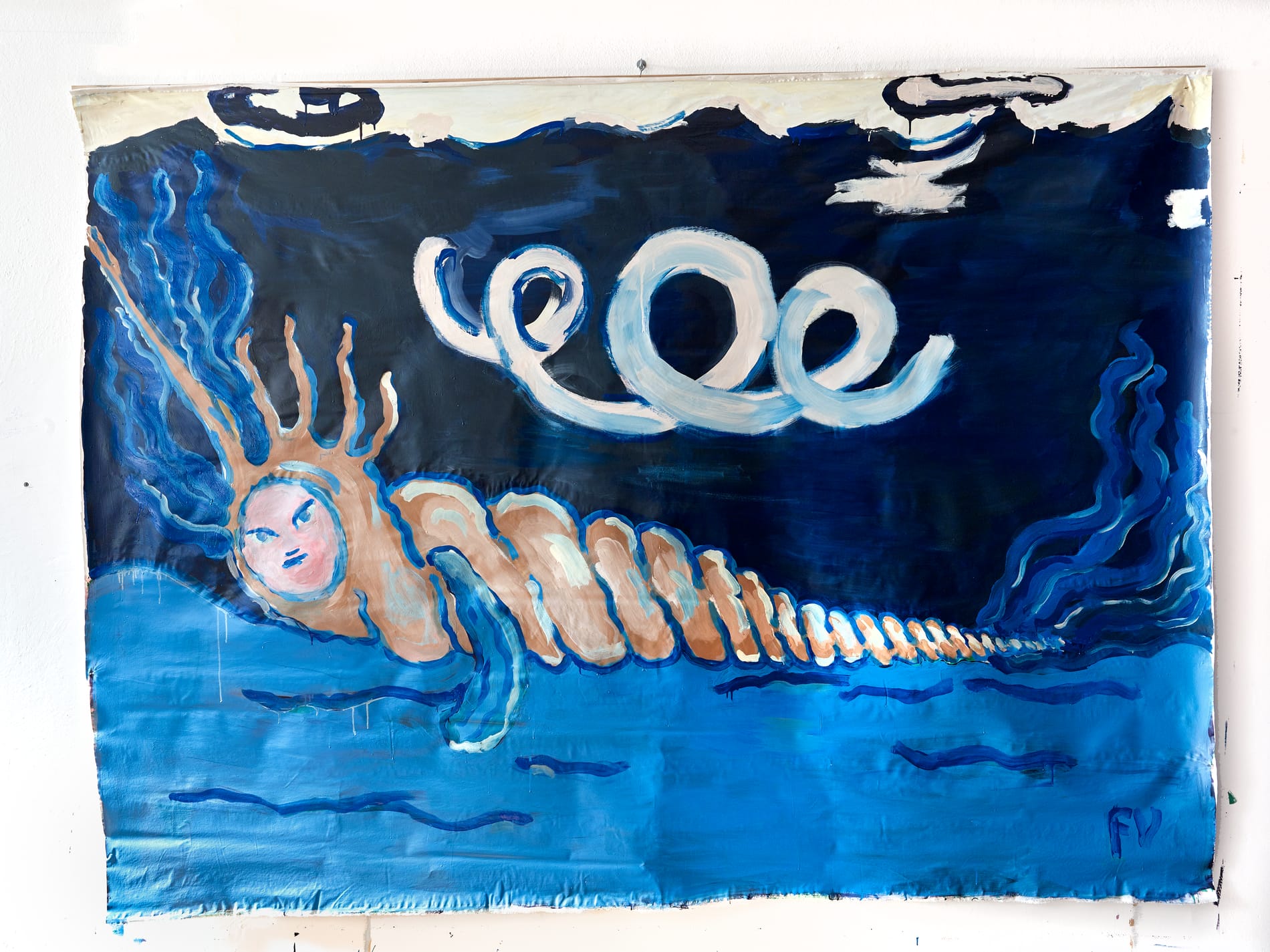 popolato da creature fluide, corpi acquatici e frammenti di paesaggi marini che si