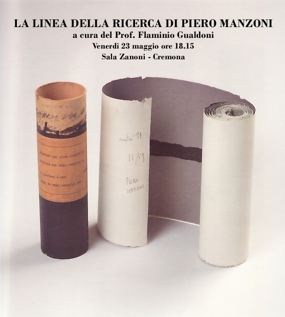 L’associazione per le arti “contemporaneA” con la collaborazione dell’assessorato alle Politiche Giovanili del comune di Cremona organizza venerdì 23 maggio ore 18,15 la conferenza tenuta dal Prof. Flaminio Gualdoni, storico dell’arte e docente presso l’Accademia di Brera, intitolata La linea della ricerca di Piero Manzoni.
