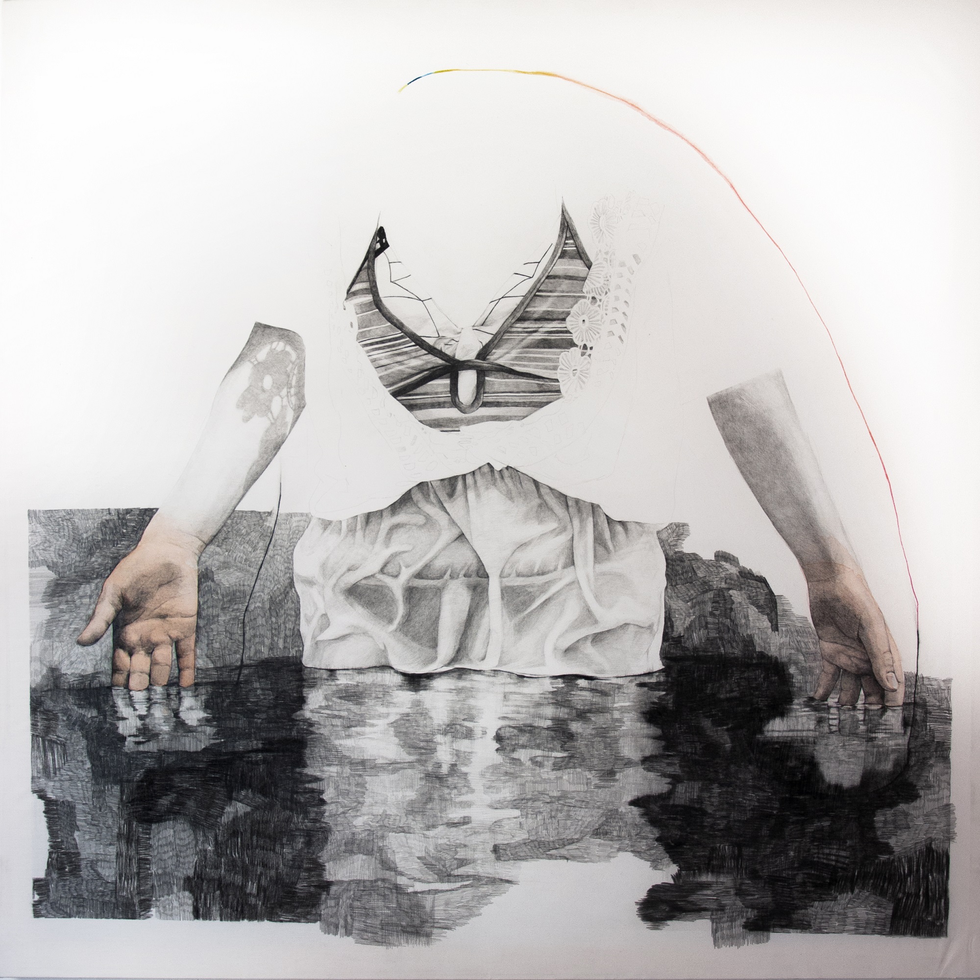 interiorità, e la metà emersa che si riflette sull’acqua frammentandosi. L’acqua è nera come la