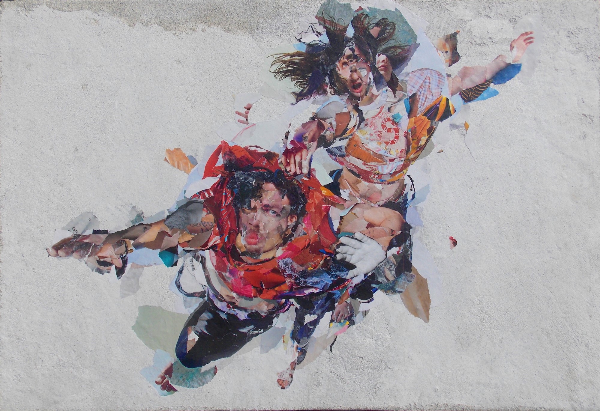 collage, sono frammentate e sradicate. A supporto dei soggetti sceglie la tecnica dello strappo