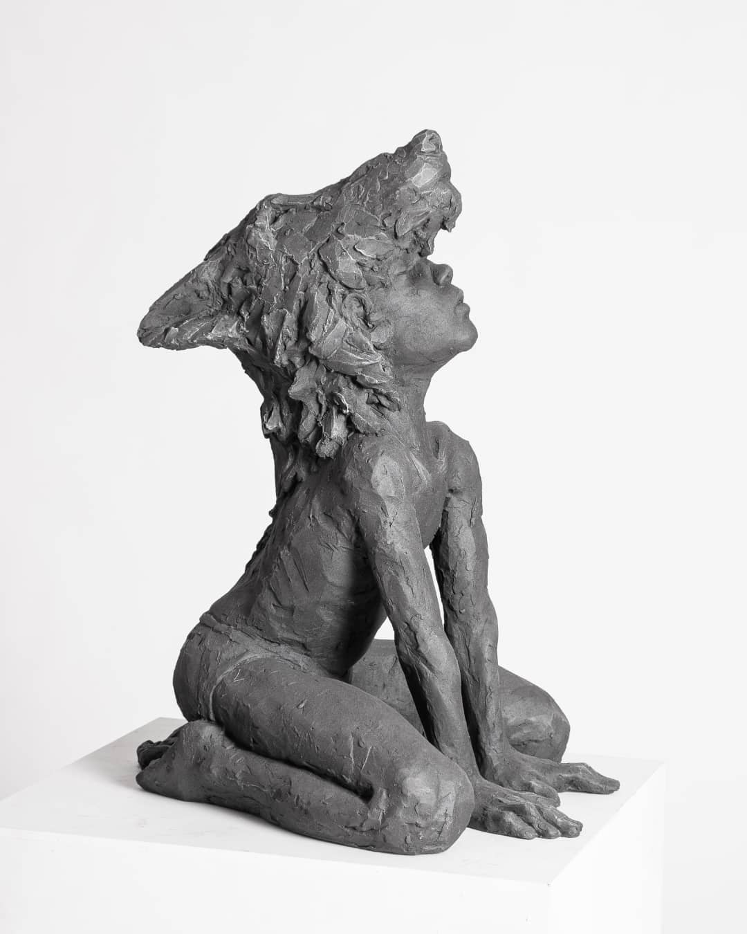 L’artista sembra immedesimarsi nella scultura che prende forma pezzetto di argilla dopo pezzetto,