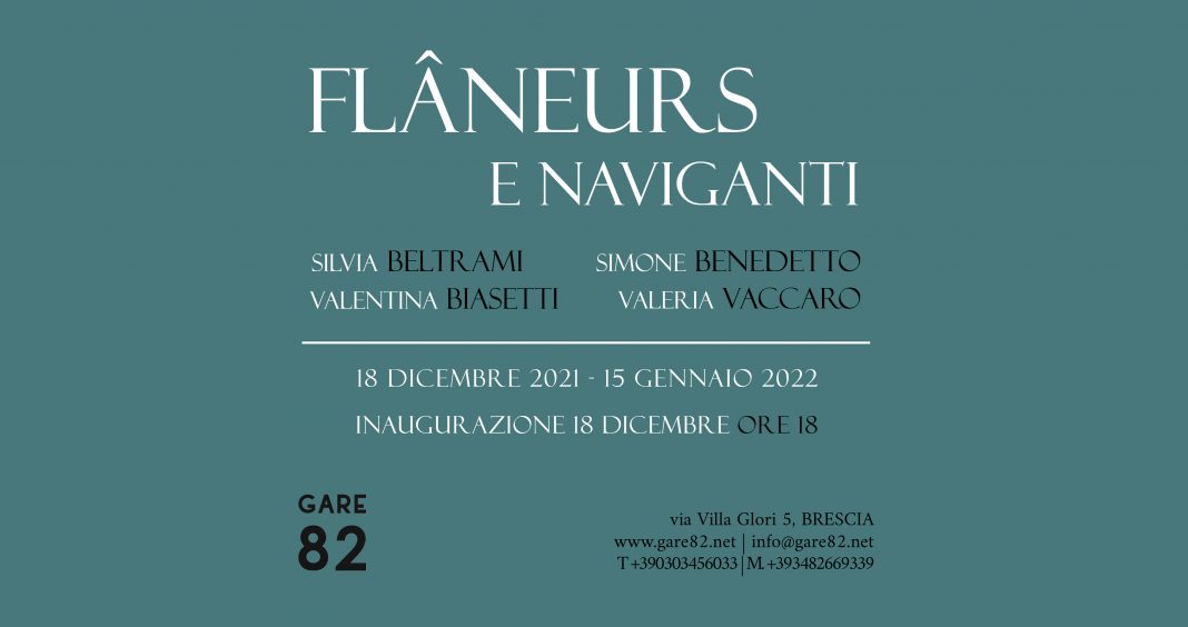 La mostra Flâneurs e naviganti intende proporre un’occasione per rallentare ed entrare nel processo creativo di quattro artisti molto diversi tra loro ma le cui riflessioni convergono lucide verso la condizione post moderna.