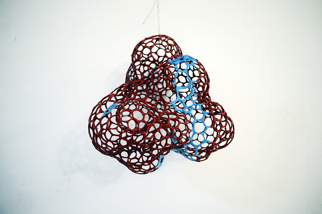 Nei “Notturni” Bucci estremizza la ripetitività del gesto creando strutture tridimensionali che invadono lo spazio. Utilizzando la penna 3D l’artista disegna forme che questa volta si espandono in tutte le direzioni, liberamente e attraverso le trasparenze degli spazi vuoti dialogano l’una con l’altra in un continuum.