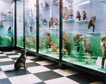 La presenza, anche se discreta, di oggetti che presupponiamo esterni all’aurea di ufficialità e sterile conservazione di una raccolta scientifica, fanno scivolare il significato dell’impostazione visiva e conoscitiva dell’immagine fotografica. L’artista ha così documentato questa sorta di “infrazione” dell’allestimento e proseguendo nel suo progetto ha costruito i successivi scatti inserendo alcuni dettagli che per quanto reali e “possibili”, conferiscono allo spazio un tono surreale ed ambiguo, già peraltro evocato dalla forte presenza degli animali imbalsamati che popolano il museo con le loro pose ed i loro sguardi congelati.