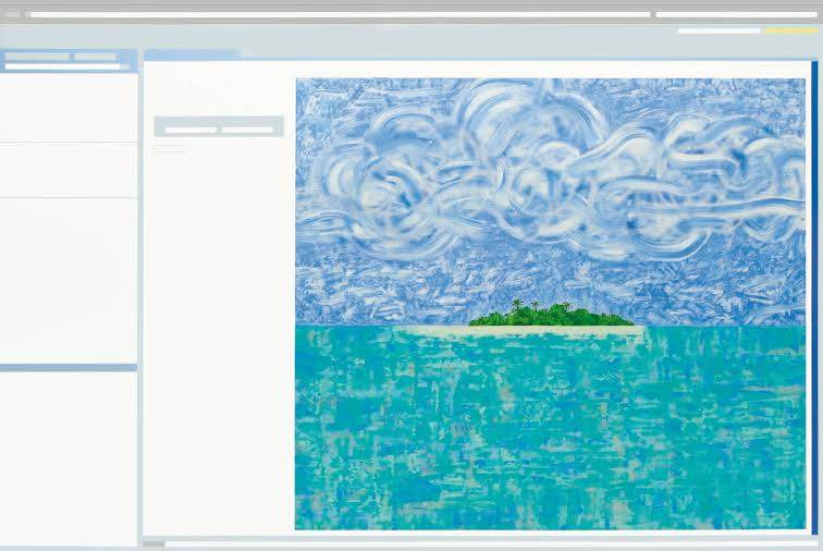 Stella è un’isola immaginaria nel cuore dell’Egeo, costruita come un collage di differenti tipologie di paesaggio, è in sostanza un software della pittura, un inventario di immagini a cui l’artista attinge, combinando e componendo sulla tela con differenti tecniche: cartoline, pubblicità, panoramiche reali, dipinti dalla tradizione della storia dell’arte