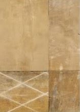 con i segni dell'usura da calpestio e delle vernici del lavoro. Una
