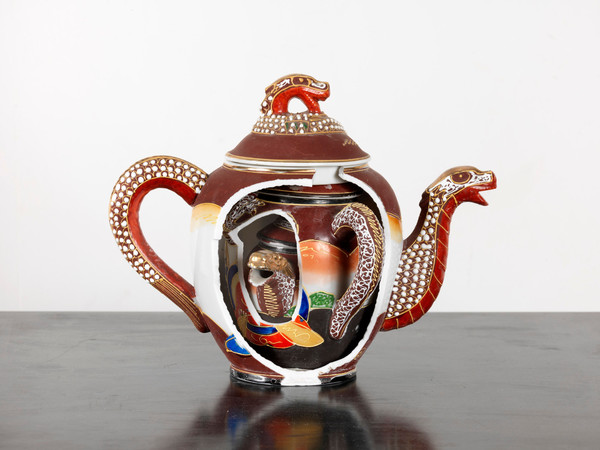 Flavio Favelli utilizza oggetti d’arredamento o di uso comune che rimandano sia all’estetica borghese degli ambienti familiari in cui è cresciuto, sia a quella del consumo prodotto dall’industria e dalla pubblicità.Nelle sue opere – collage, sculture, ambienti – i materiali vengono assemblati dando vita a sovrapposizioni di senso che non snaturano gli oggetti ma ne amplificano il valore simbolico. Sono oggetti di una quotidianità passata ma inconsciamente presente ancora oggi.