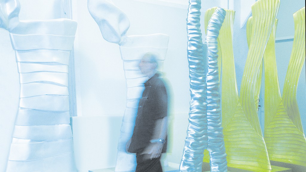 In occasione della serata “Ricomincio da 90” per i 90 anni di Flavio Lucchini, la Triennale ospita l’installazione Ghost, sculture di vestiti-sogno, ricordi di abiti indimenticabili, in cui 4 opere di resina madreperlata e catalizzata sono abiti divinizzati da cui il corpo sembra volato via, perfetto connubio tra arte e moda