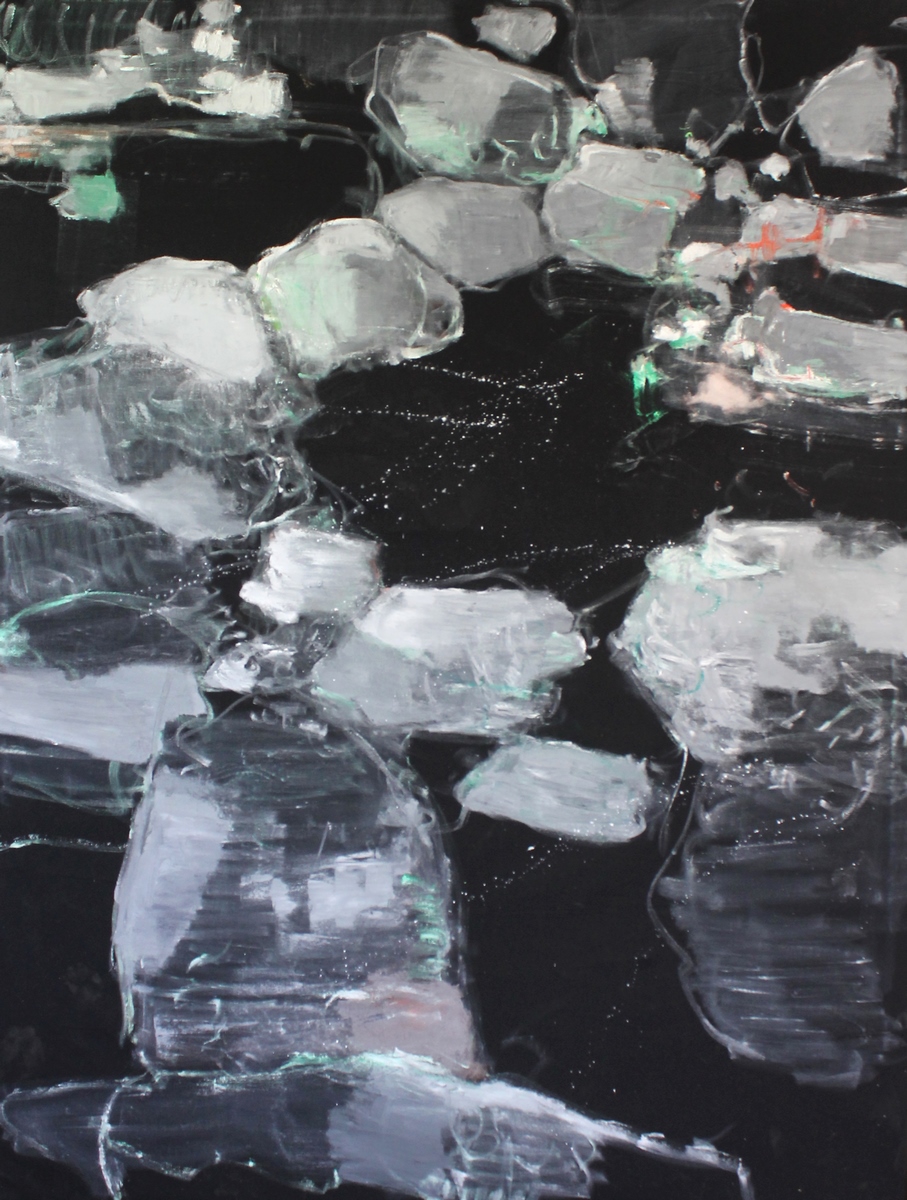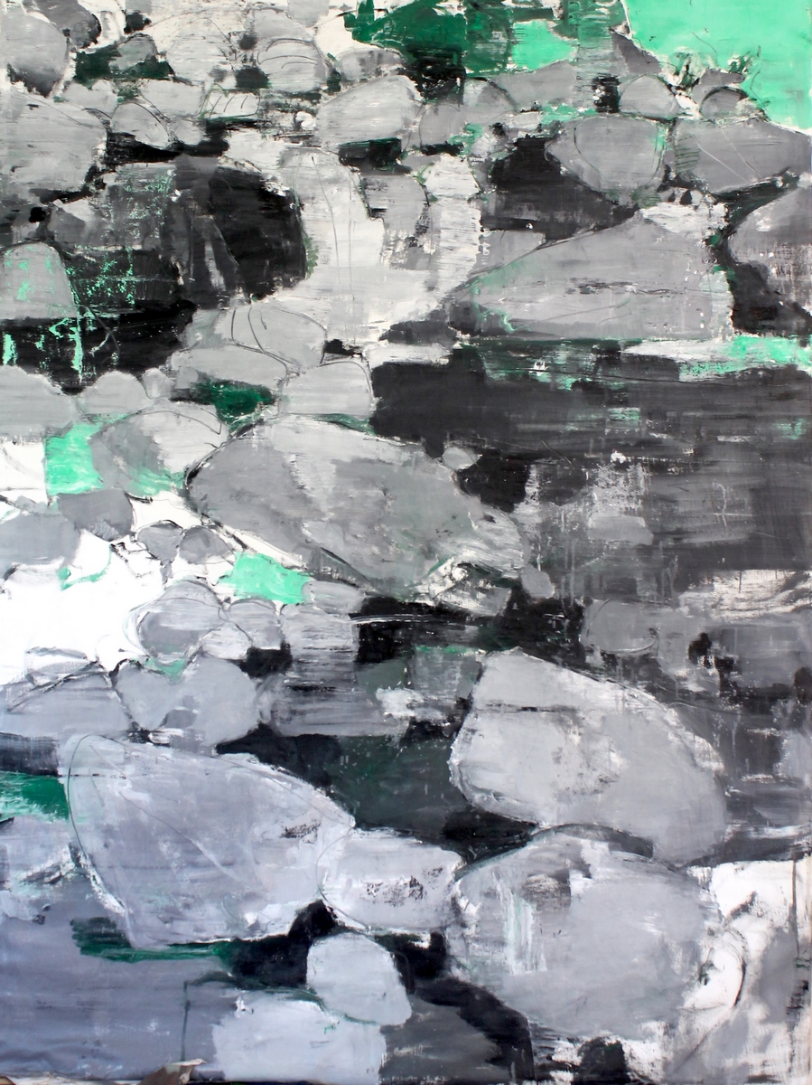L’accezione ciclica del tema naturale diviene elemento centrale e fondante anche nell’opera di Giovanni Frangi (Milano, 1959): per l’artista è necessario indagare la ripetizione, in maniera spesso ossessiva, che si ripresenta nell’avvicendarsi delle stagioni, al contempo uguale e mutata. Partendo da un’immagine fotografica scattata personalmente, Frangi fonde in un unicum la verosimiglianza dell’immagine all’inverosimile della tecnica: un campo d’azione circoscritto e infinito, come la forza naturale da cui prende spunto. Di tale ricerca poetica, esemplari risultano le opere “Balma 1” (2021) e “Valdobbia 1” (2021), dove il soggetto riprodotto – l’alveo di un fiume e gli elementi che lo compongono – si svelano quali simboli del lento e costante mutare dell’esistenza: come sassi di fiume, levigati dall’acqua, si prende coscienza dei propri mutamenti nello scorrere del tempo.