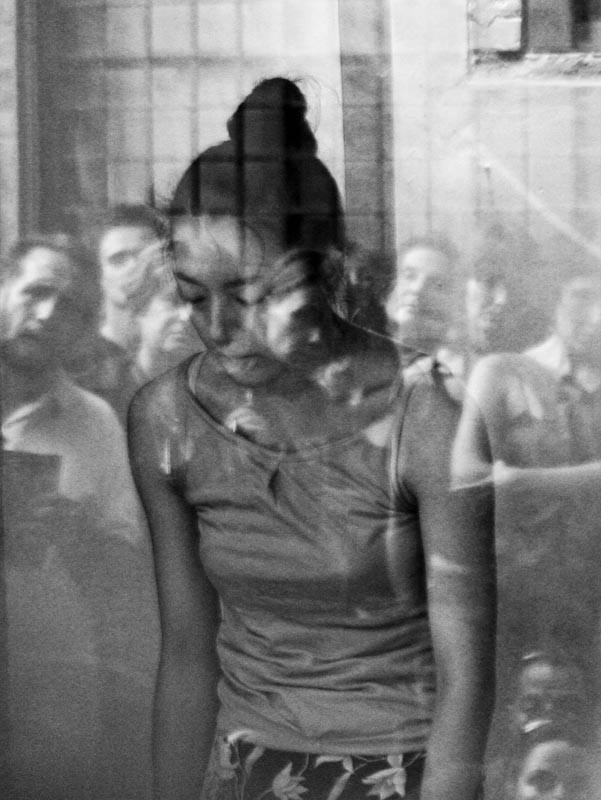 Leggero come un dubbio. Nel mentre che si vive poi, lasciando cadere i sacchi di certezze, la vita prende il suo posto, e ci lascia all’abbandono di un sospiro. La spontaneità del gesto non è altro che l’emulazione di un movimento unico e moltiplicabile, eseguito da persone a persona. Un rito, di fronte allo specchio. E il velo che separa questa coscienza, trasforma l’esistenza in una rappresentazione.