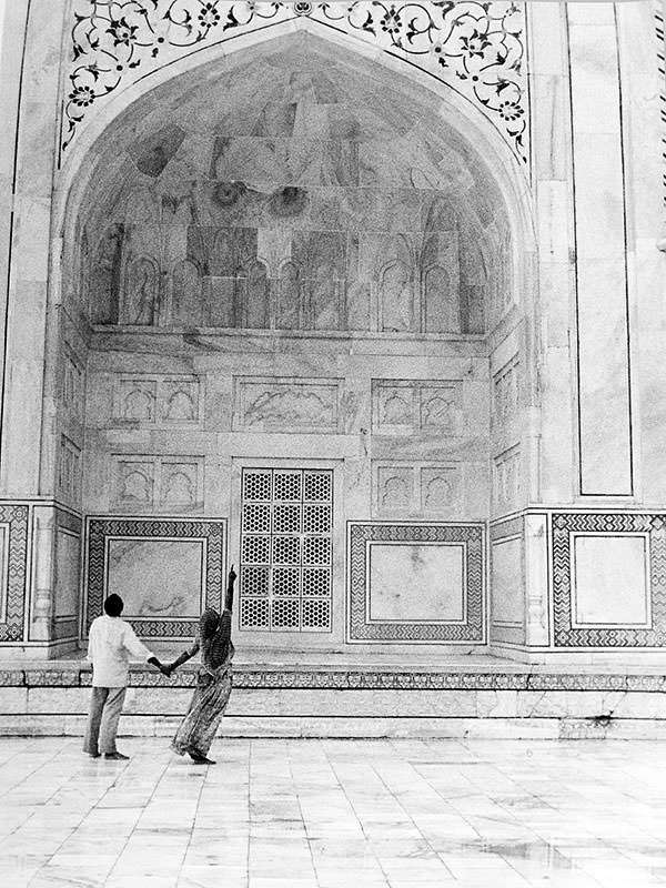 Per molti fotografi il reportage fa rima con pellicola e bianco e nero. Flavio Tecchio riesce a utilizzare questa particolare declinazione della fotografia restituendoci un’immagine dell’India insolita, lontana dal calore e dai colori ma imponente nella sua graficità, nella perfezione che monumenti e gradinate disegnano. Palazzi e scenari monumentali sono lo sfondo dove l’uomo non sparisce, ma si inserisce nelle inquadrature arrivando a determinare l’atmosfera dell’intera immagine. E’ cifra stilistica dell’autore infatti lasciare sempre spazio alla figura umana, realizzando composizioni dove geometria ed emozione si spartiscono la scena.