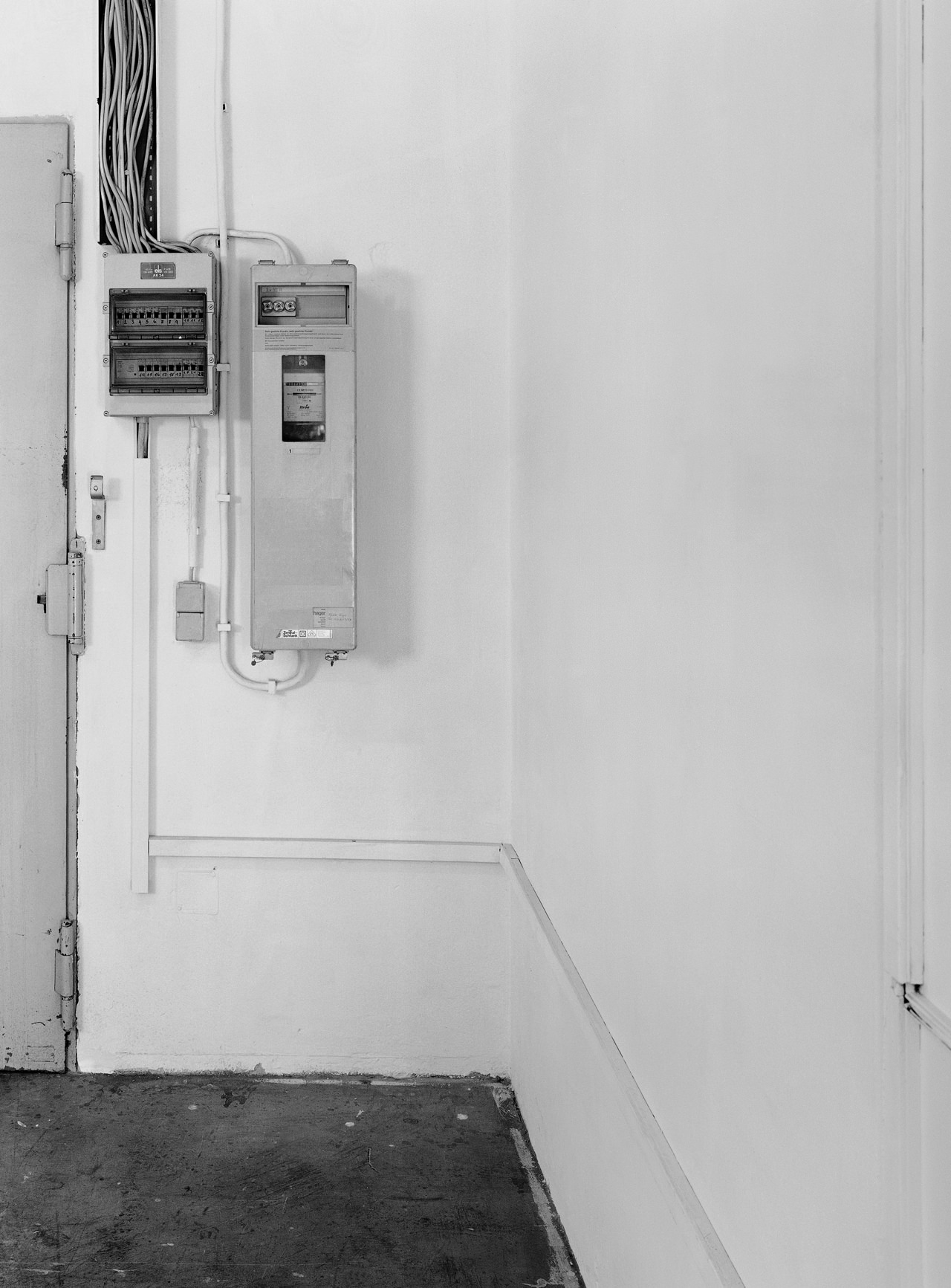The black-and-white photographs of Slotawa's studio, taken between 2009 and 2012, show empty spaces, limited essentially to their structural elements. The place where the artist conceives his work becomes the subject of the work itself and finds concrete expression in minimal abstractions in a constructivist mode. The empty rooms in the photographs come together with the empty spaces of the gallery, creating a kaleidoscopic vision.