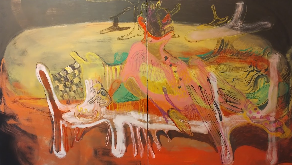 Pennellate precise e forme scolpite delineano figure umane, forme antropomorfe, paesaggi interiori, dove la leggerezza del sogno incontra tonalità più gotiche e profonde.