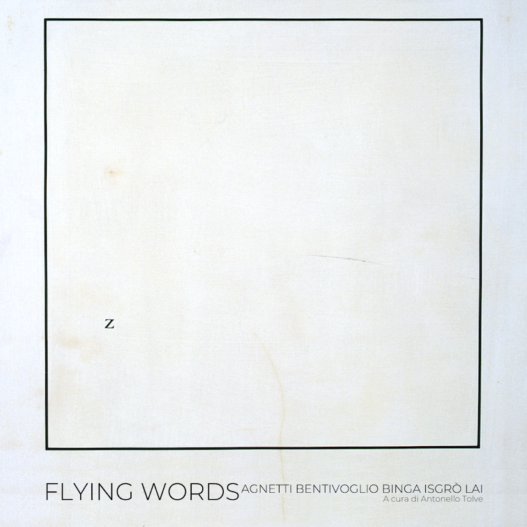 verboiconicità, su un terreno che apre una breccia al di là del verso per entrare in un panorama ibrido dove la parola diventa immagine e l’immagine diventa parola, Flying Words pone l’accento su dimensioni creative dove la parola è espressione (orale o scritta) di una pratica informazionale e contestualmente strumento iconico che porta l’artista sulla soglia con il fine di “costruire una propria struttura verbale, o visiva”, a suggerirlo è Daniela Palazzoli, “che sia competitiva non tanto nei confronti della Parola quanto nei confronti della Lingua”. Si tratta, nello specifico, di un progetto su quel vasto clima culturale che accorcia le distanze tra codici differenti per porsi al limite, sul precipizio di una parola che quasi «de-parlando» (Ent-sprechen) il parlato raggiunge il silenzio e rischia se stessa per farsi immagine, corpo, messaggio bruciante e accecante, espressività individuale e nel contempo socializzata, discorso analitico sull’arte e sulle sfere offerte dal mondo della vita che resta per tutti l’orizzonte dentro il quale si tesse la trama dell’opera.