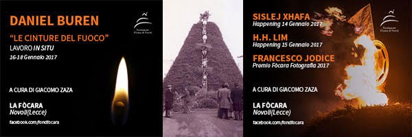 Nell'ambito del progetto FòcarArte, presso il Palazzo Baronale di Novoli (Lecce), in Piazza Regina Margherita, viene realizzata una mostra (dal 15 gennaio al 26 febbraio 2017) che comprende un grande lavoro in situ di Daniel Buren, pensato in conformità con le sale del Palazzo Baronale, alcuni lavori video di Sislej Xhafa e H.H. Lim.