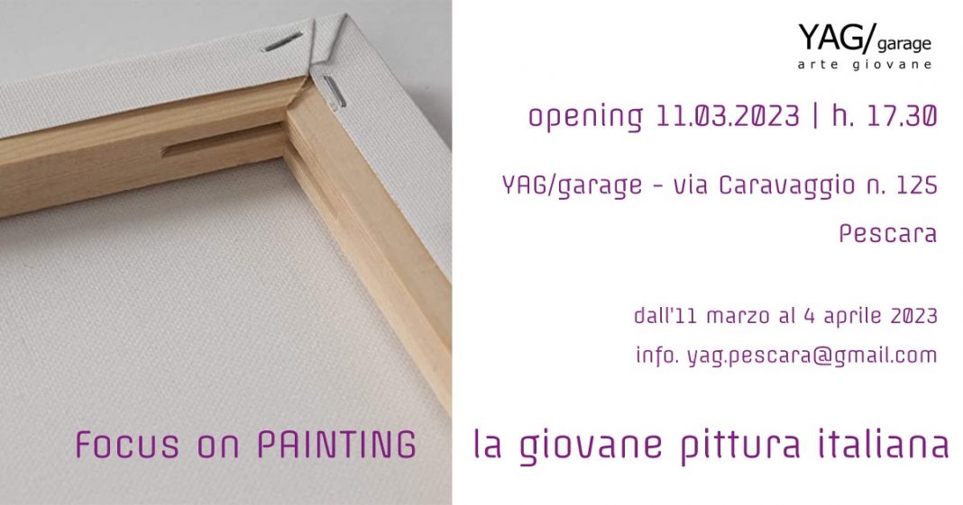 Focus on PAINTING | la giovane pittura italiana apre la stagione espositiva 2023 della YAG/garage, galleria d’arte di Pescara. La mostra, attraverso il coinvolgimento di giovani artisti, giovani curatori e giovani collezionisti, offre un approfondimento sulla produzione pittorica di autori di ultima e ultimissima generazione.