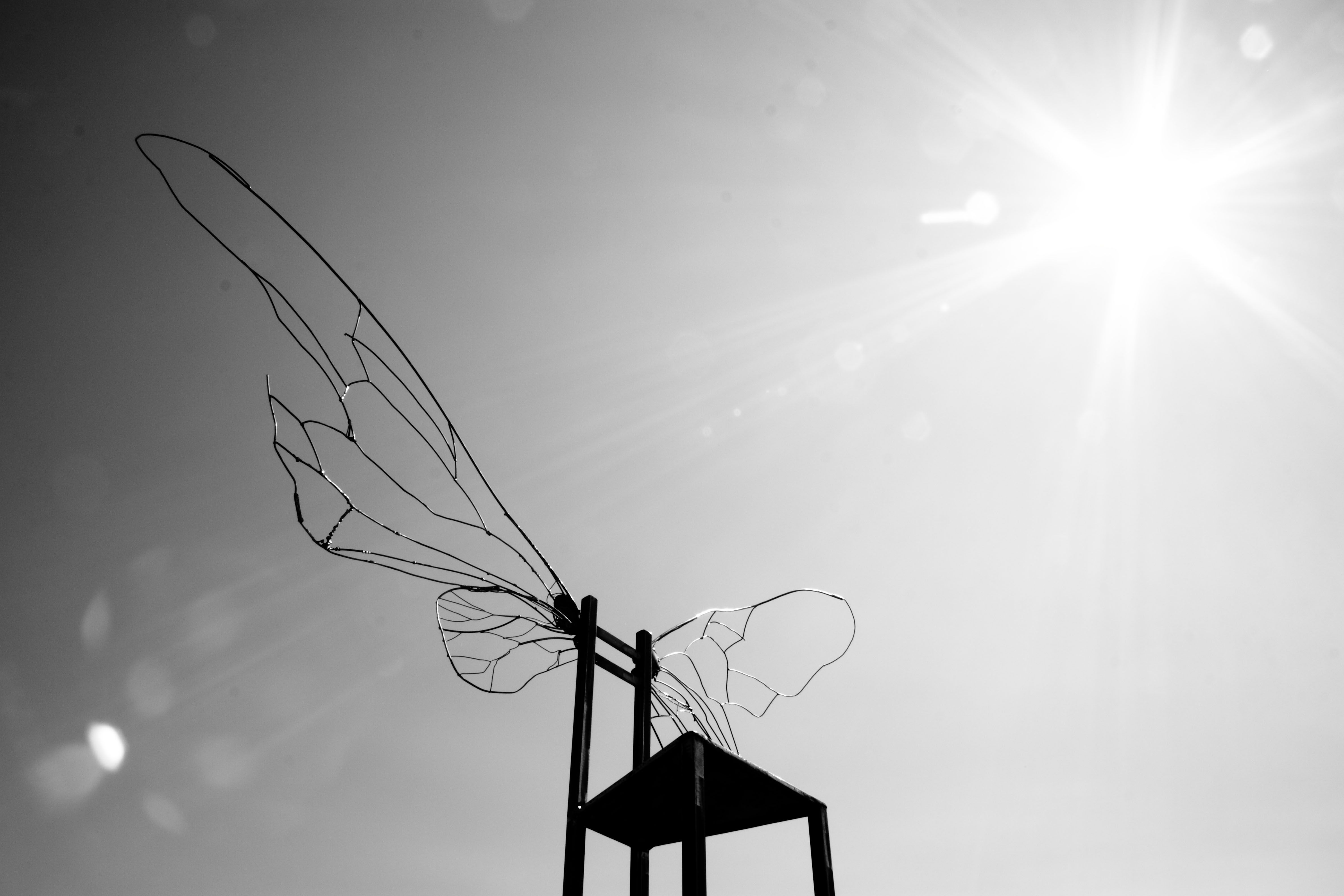 Sebbene la struttura di ferro sembri ancorarla a terra, le ali ci suggeriscono l’ebrezza del volo, il desiderio di leggerezza. Ed è in questo dualismo tra maschile e femminile, sogno e raziocinio, desiderio e regola che ci troviamo costretti ad affrontare la vita. La scelta di Icaro di avvicinarsi al Sole ne provocherà la caduta. Noi quanto siamo disposti a rischiare per sfidare i nostri limiti?