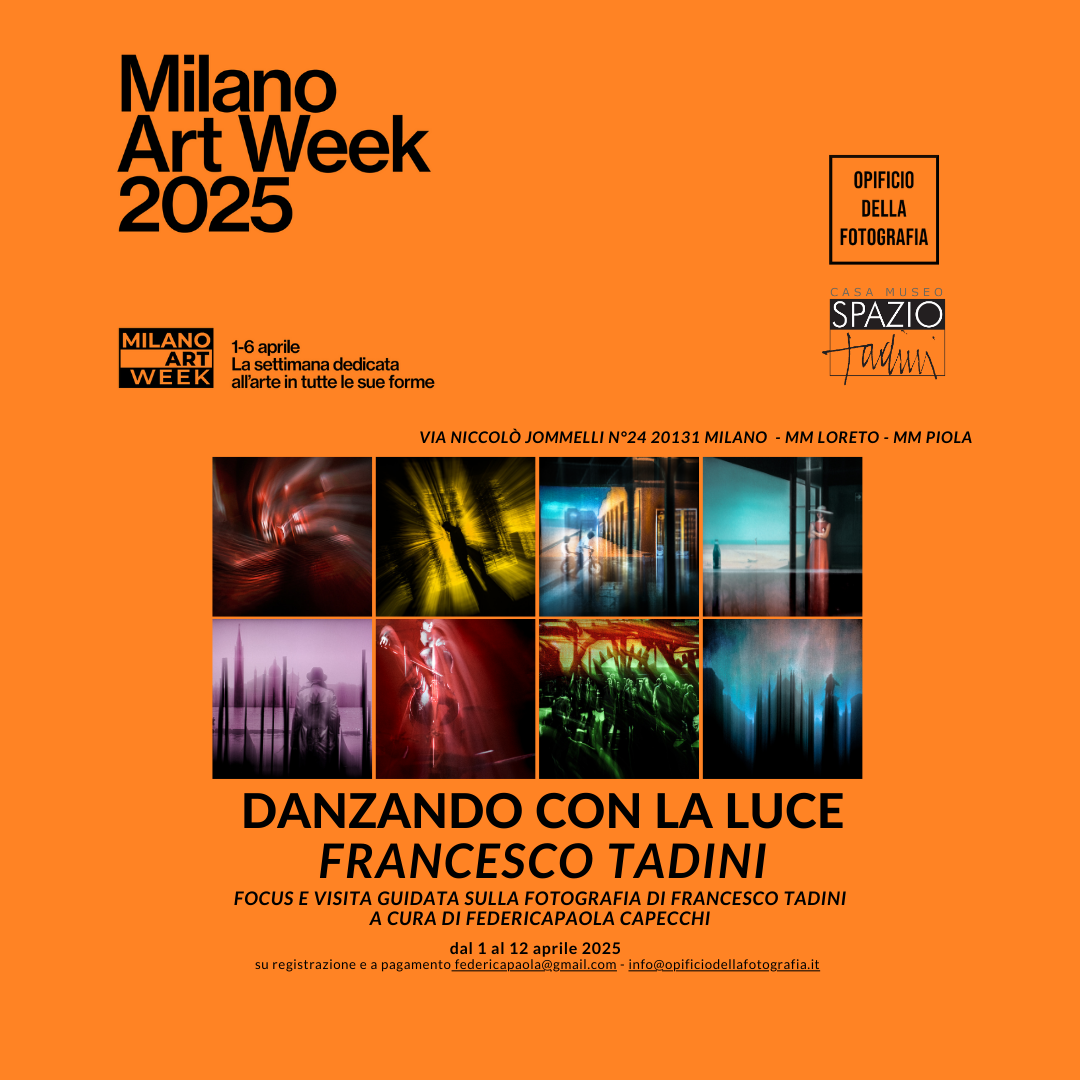 La sezione fotografia – il progetto Opificio della Fotografia interno a Casa Museo Spazio Tadini – partecipa alla Milano Art Week 2025, in concomitanza con Miart dal 1 al 6 aprile 2025 con: “Focus sulla fotografia tra riflessioni sull’oggi, luce e movimento” a cura di Federicapaola Capecchi.
