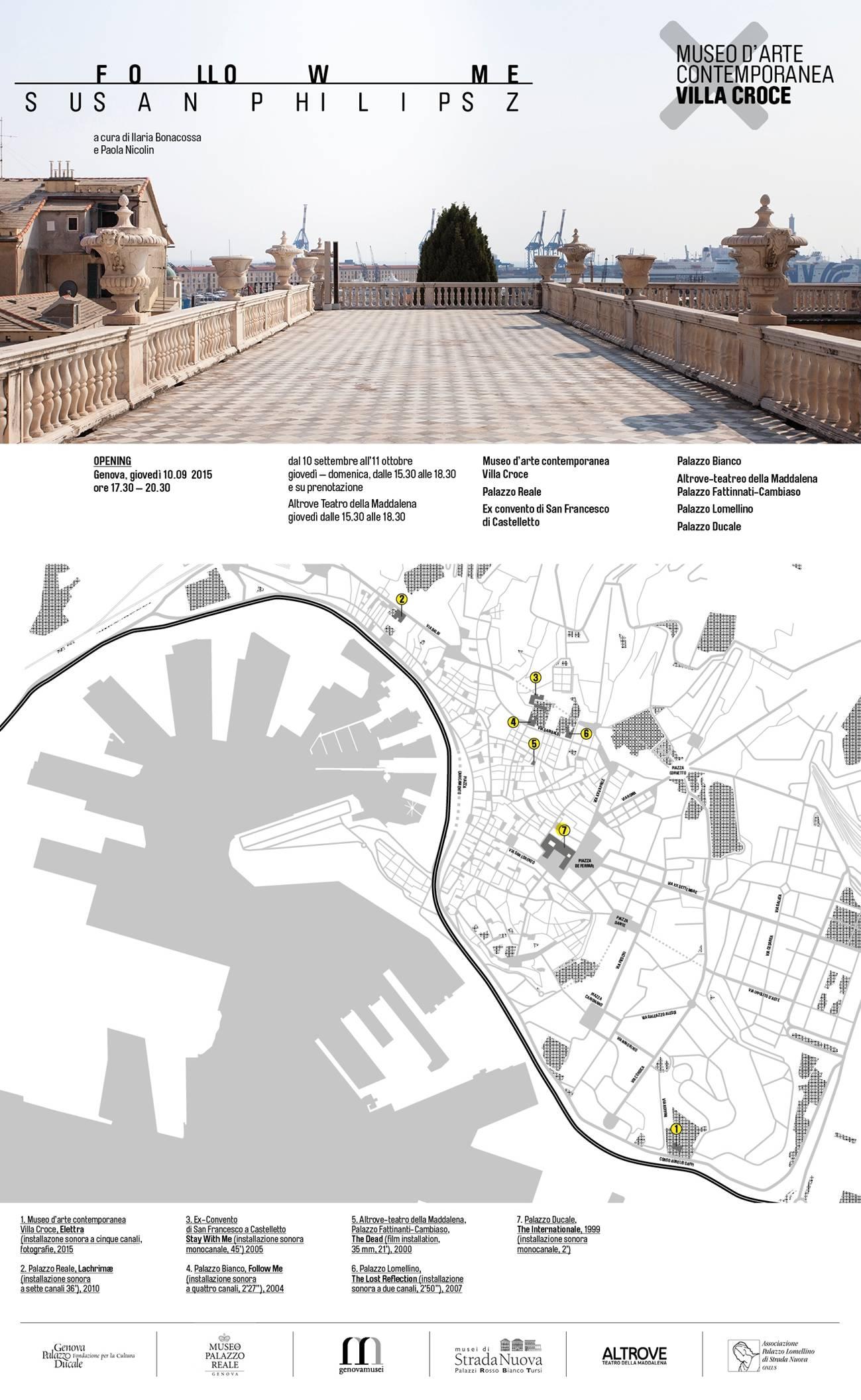 Follow Me. Susan Phlipsz è il titolo della personale dell’artista scozzese che raccoglie nel centro storico di Genova una selezione di sei lavori (realizzati tra il 1999 e il 2011) e una nuova produzione, dedicata all’Elettra, la nave laboratorio di Guglielmo Marconi.
