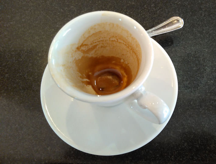 e poi di nuovo riempita e svuotata per un percorso che continua in altri fondi di caffè,